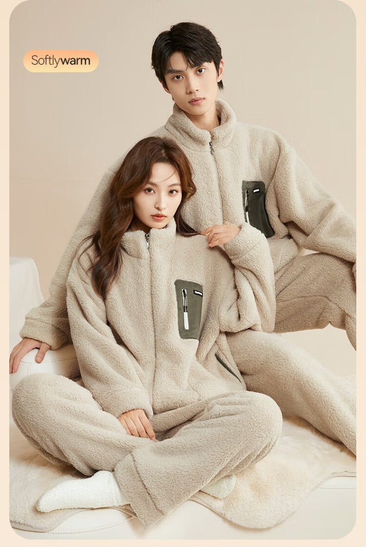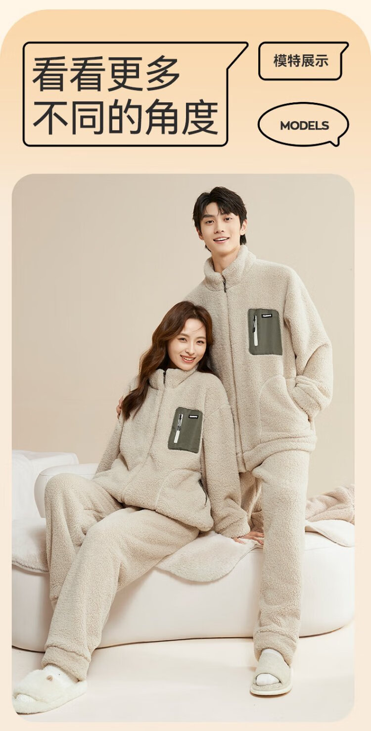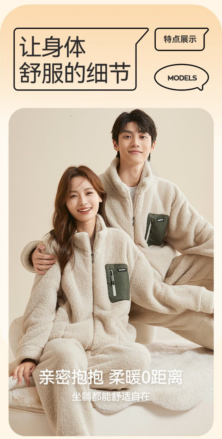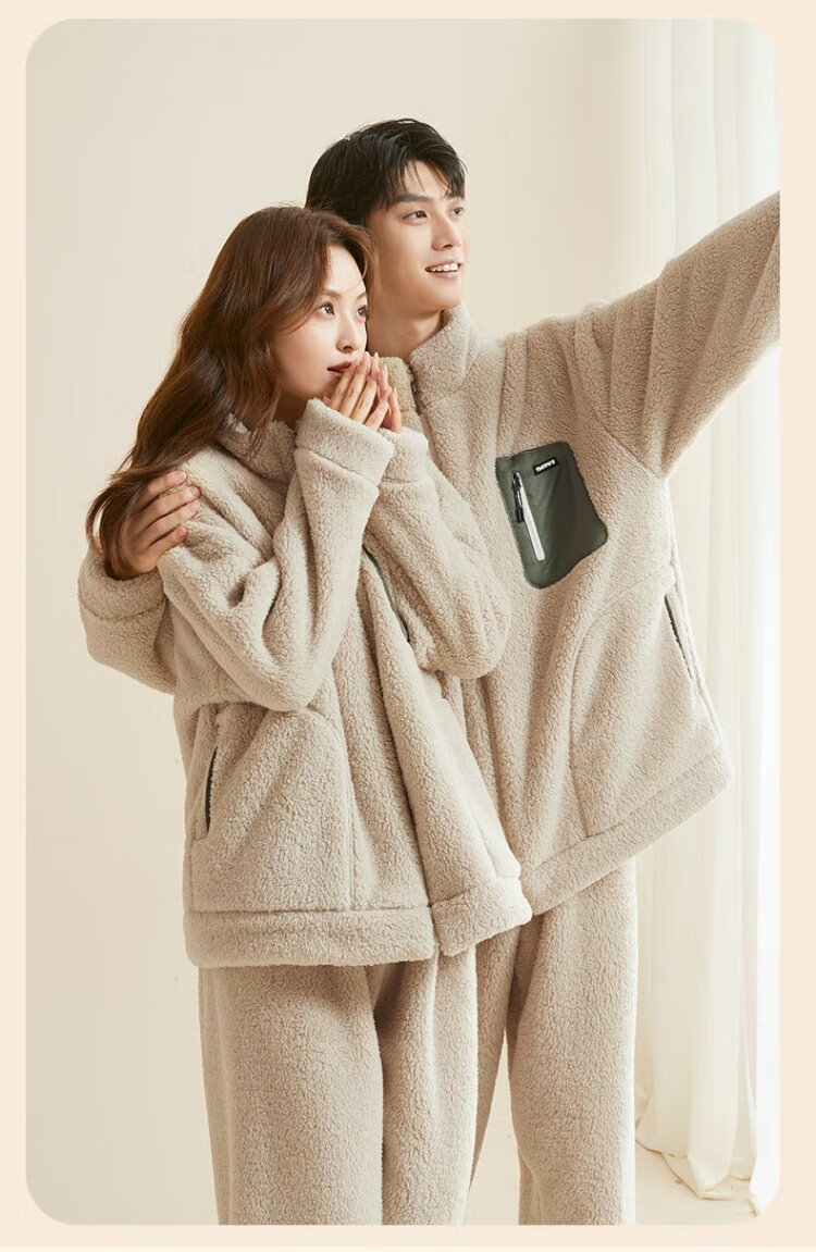 Catman stand-up collar zipper can be worn outside men's pajamas men's winter couple's pajamas lambswool home clothes 2025 new products