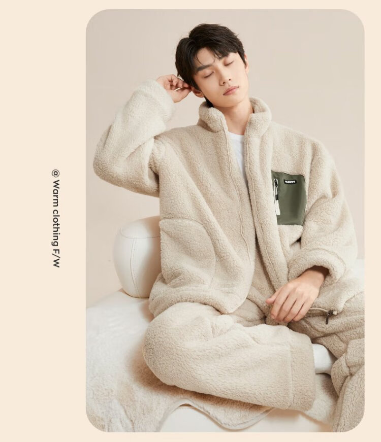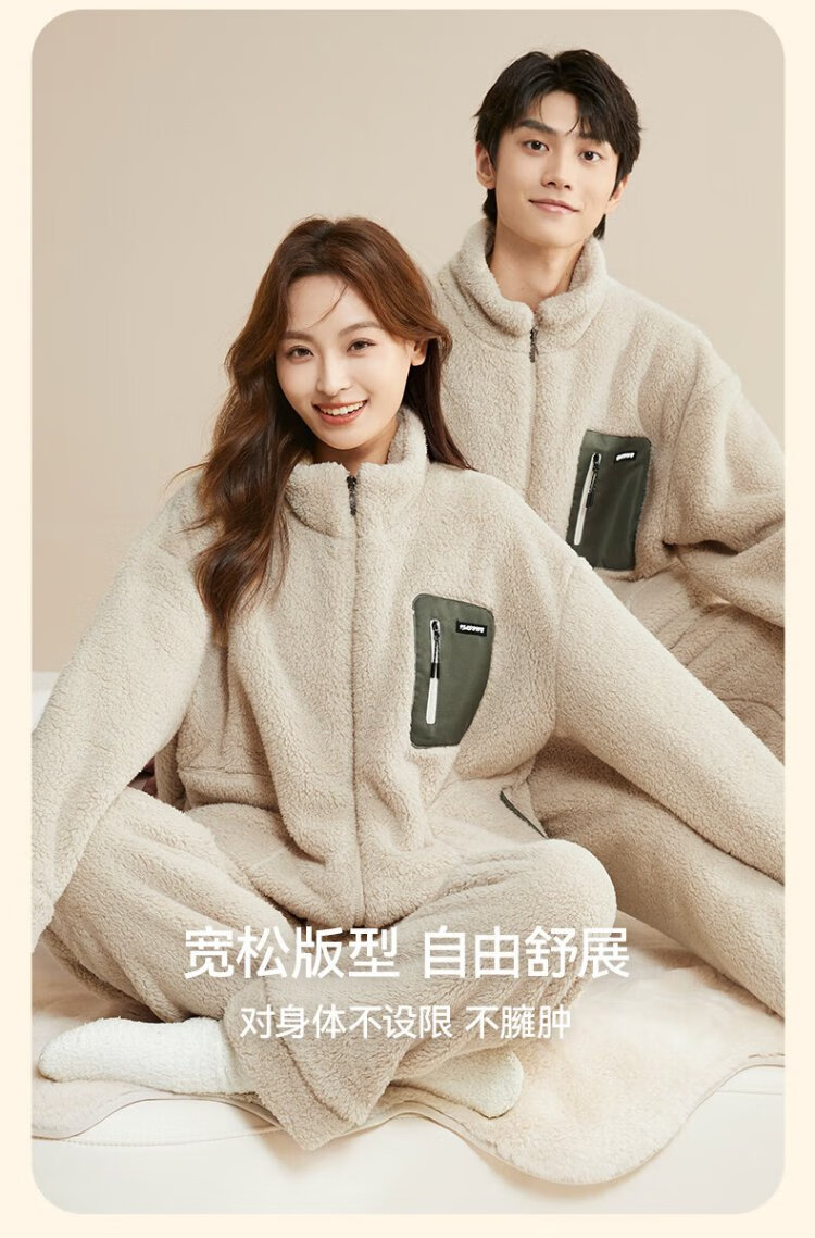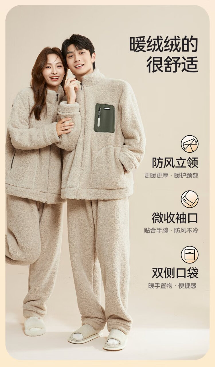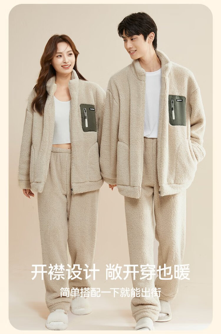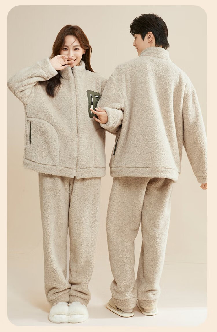 Catman stand-up collar zipper can be worn outside men's pajamas men's winter couple's pajamas lambswool home clothes 2025 new products