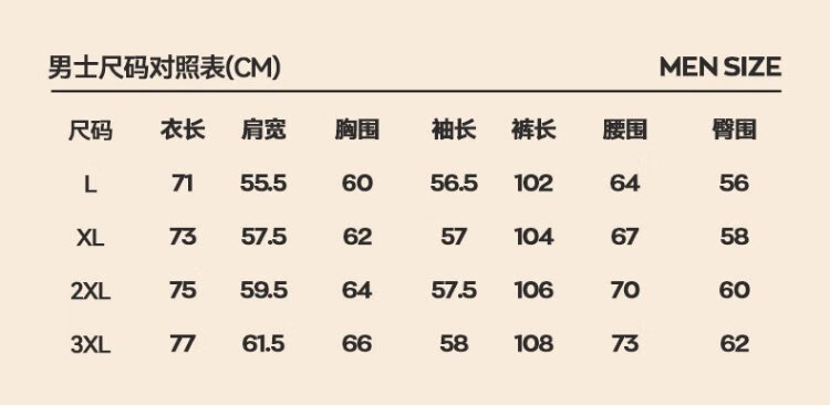 China (cm) 160-165/84-86 165-170 / 88-90 167-172 / 92-96 168-173 / 98-102 170-176 / 106-110
