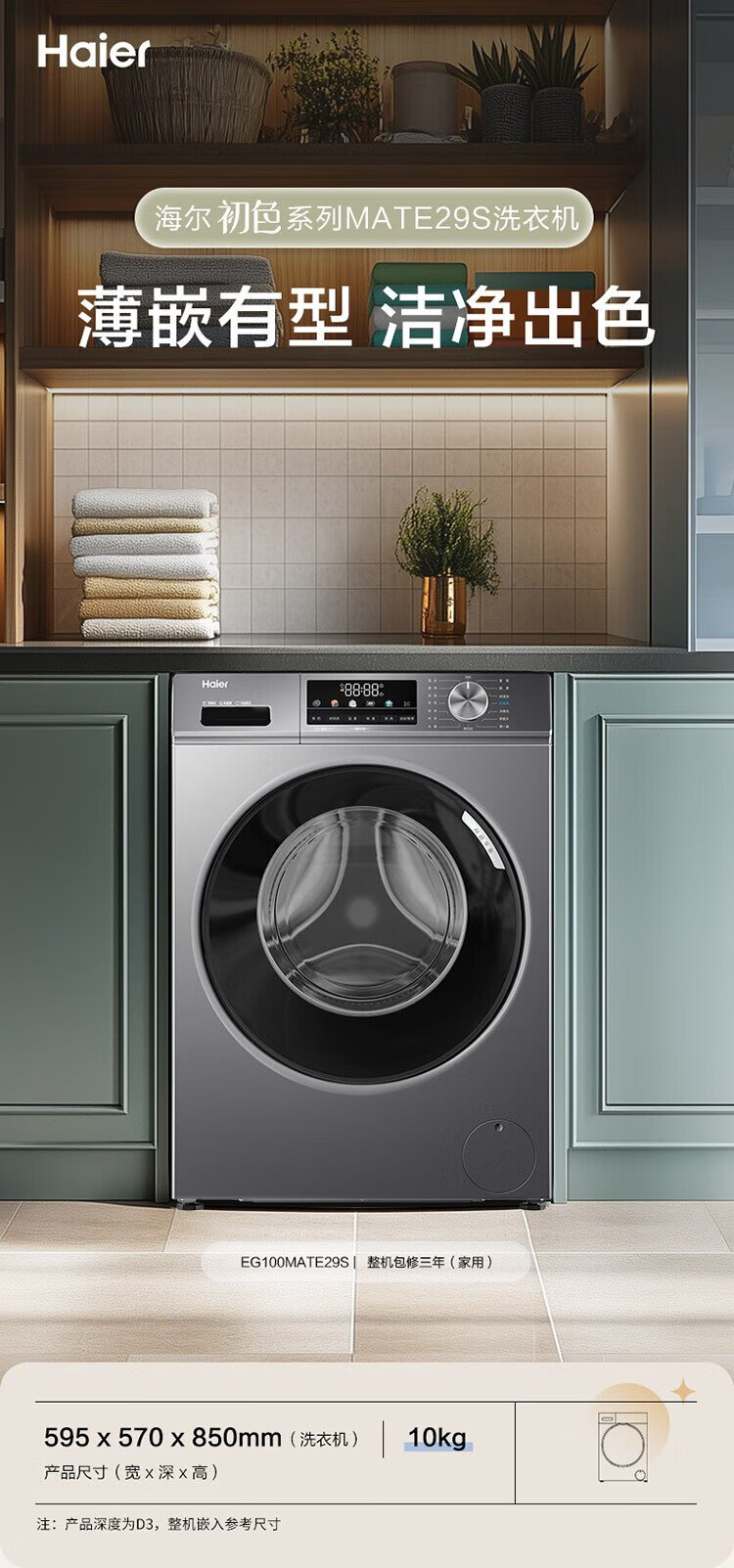 Haier drum washing machine fully automatic lazy ultra-thin household 10kg OCCMATE29S first-class energy-efficiency home appliance national subsidy trade-in underwear washing rental room