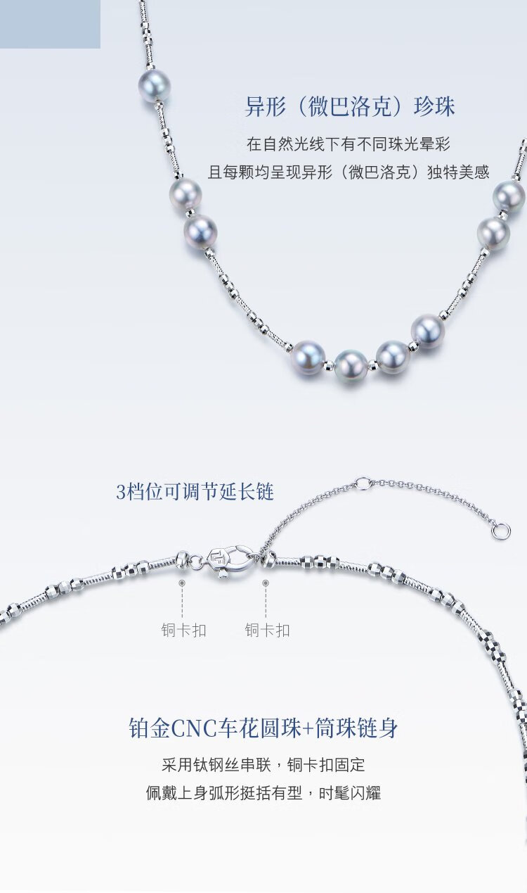 Lukfook Jewelry True Me Series Platinum 950 Seawater Pearl Platinum Necklace Total Weight Approximately 13.52 Grams