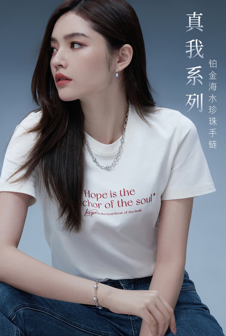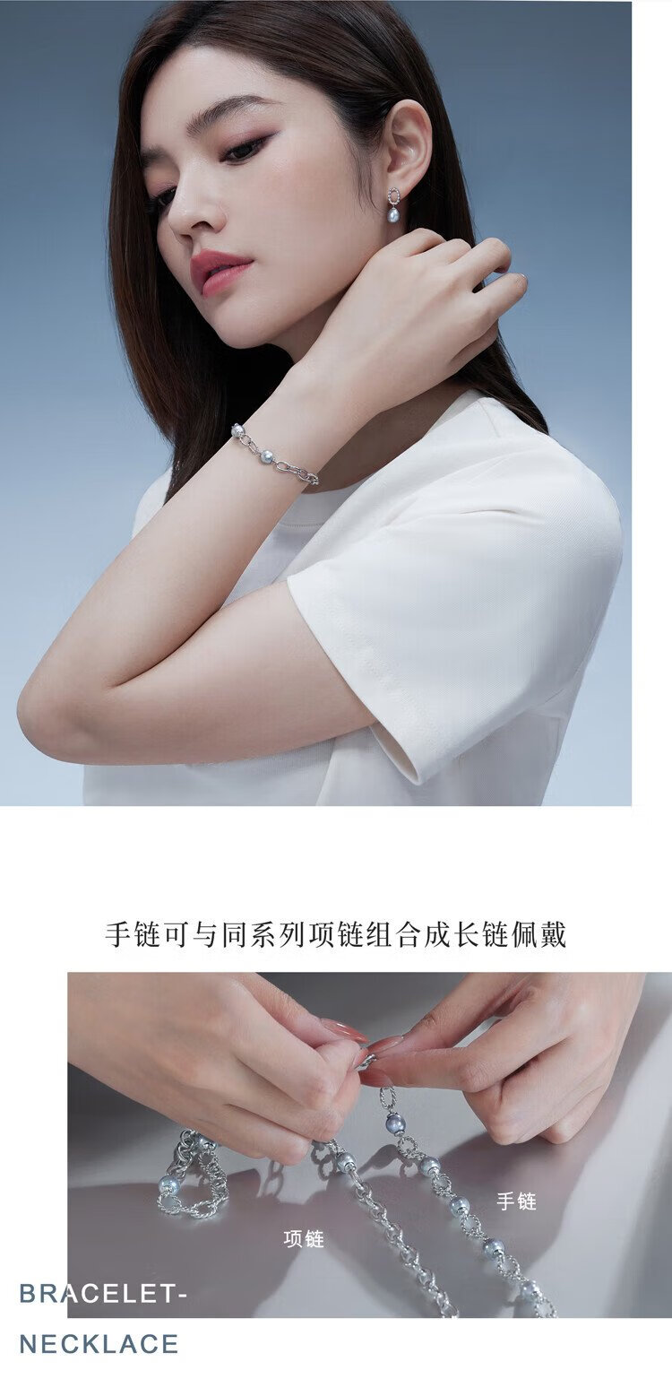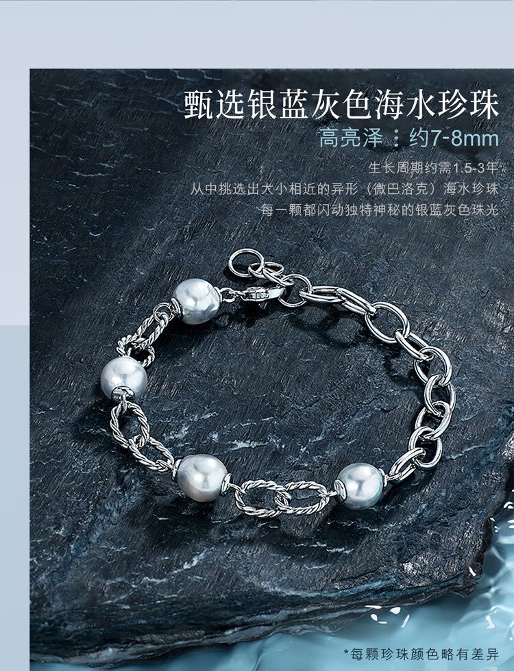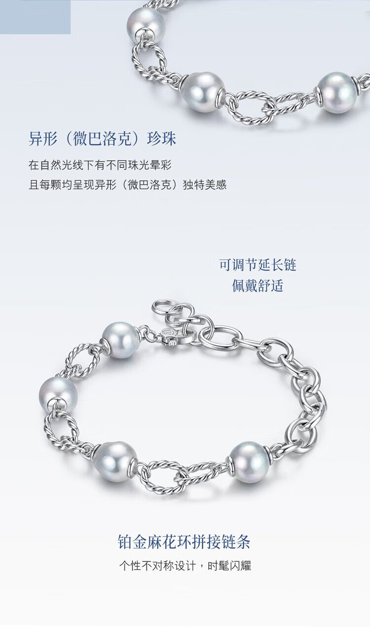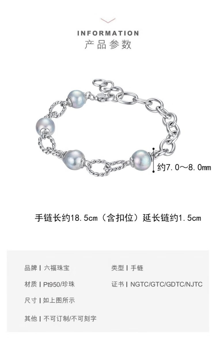 Lukfook Jewelry True Me Series Platinum 950 Seawater Pearl Platinum Bracelet Total Weight Approximately 11.27 Grams