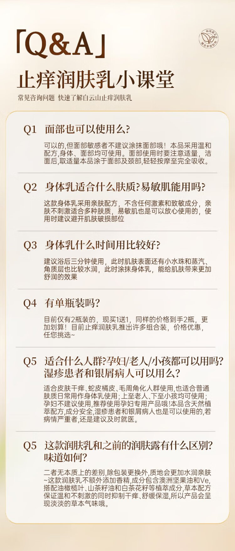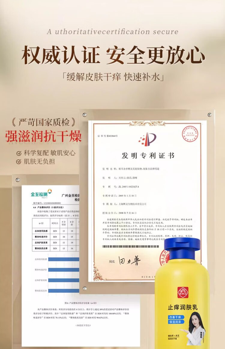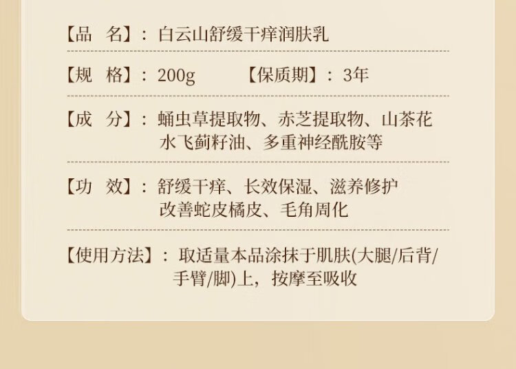 Baiyunshan anti-itch moisturizing lotion for dry, peeling and peeling skin, moisturizing and moisturizing body lotion for whole body use 200ml