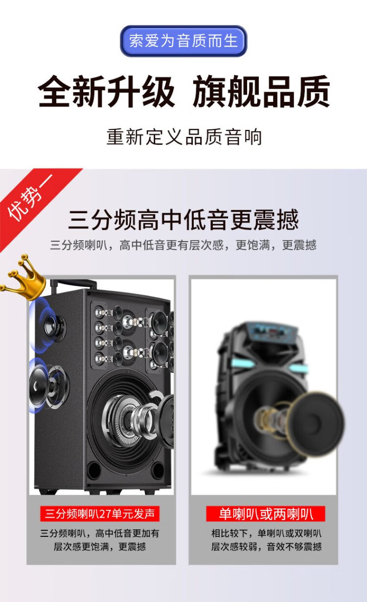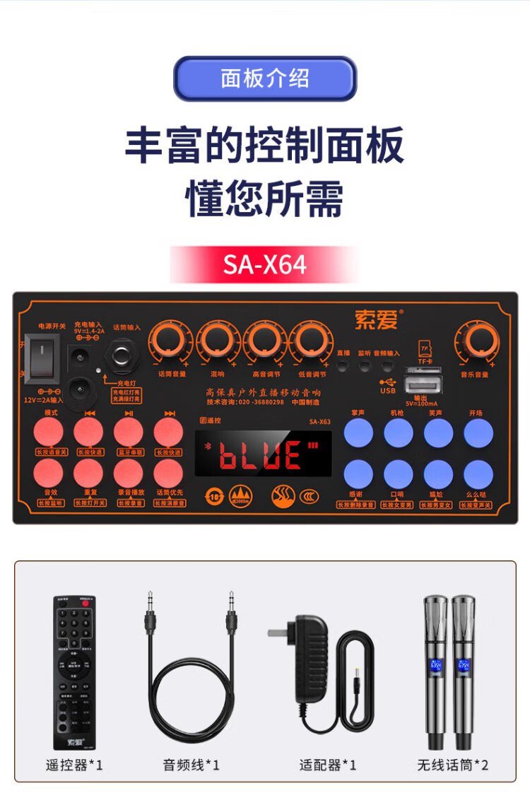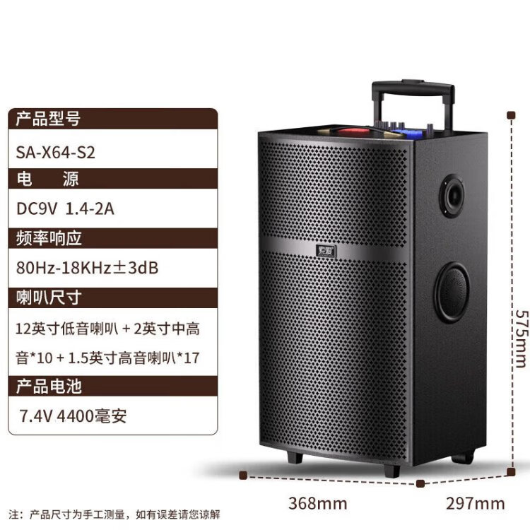 Sony Ericsson (soaiy) X64 high-power 27-speaker subwoofer square dance outdoor karaoke Bluetooth electric acoustic guitar instrument speaker rod speaker amplifier dual microphone 12 inches