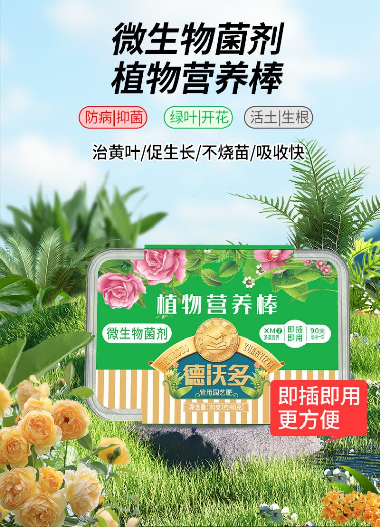 Dewoduo plant nutrition bar universal 30-pack gardening green plant flower fertilizer vegetable slow-release fertilizer flower planting stick