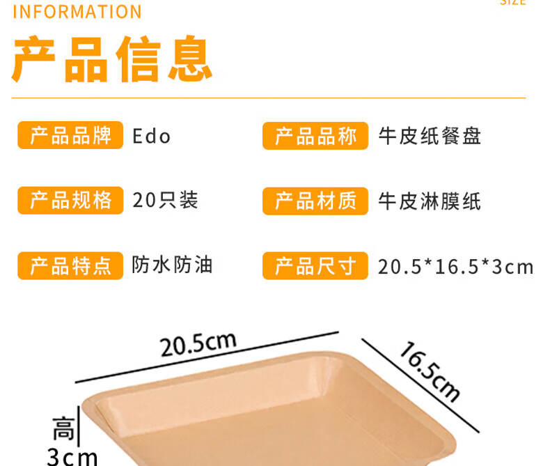 Edo Disposable Paper Plate Biodegradable Disposable Kraft Paper Plate Dessert Plate 450ml 20 Barbecue Plate Paper Plate