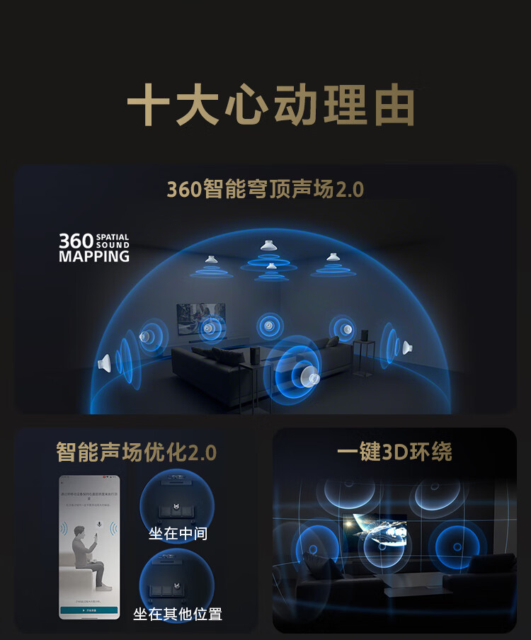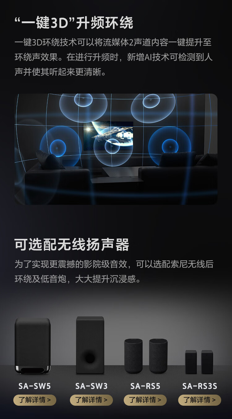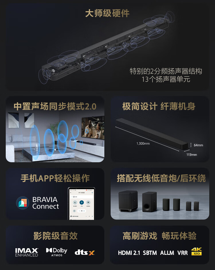 Sony (SONY) HT-A9000 Atmos Single Sound Wall 360 Smart Dome 4K/120Hz VRR ALLM Home Theater Soundbar TV Speaker Bluetooth
