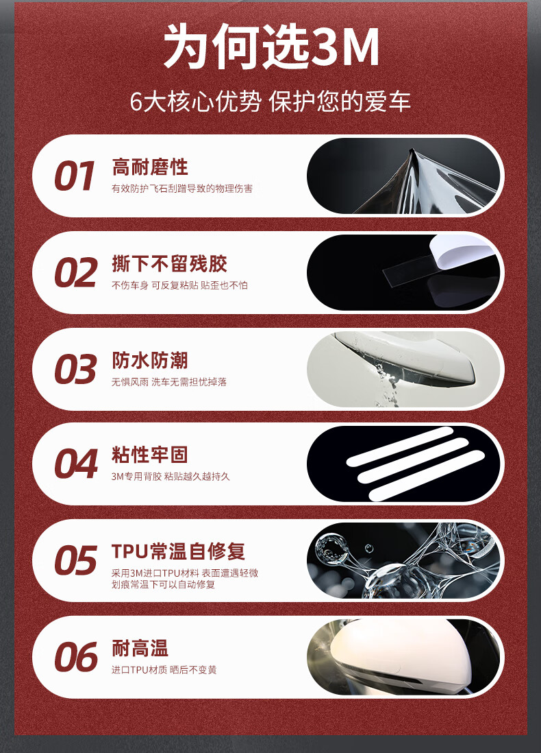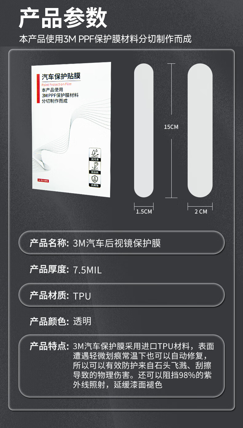 3M car protective film tpu invisible car cover full car paint rhino leather anti-scratch and anti-collision self-healing transparent film 2cm*15cm (3 pieces) rearview mirror