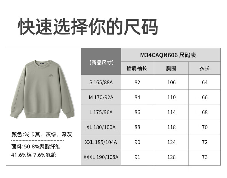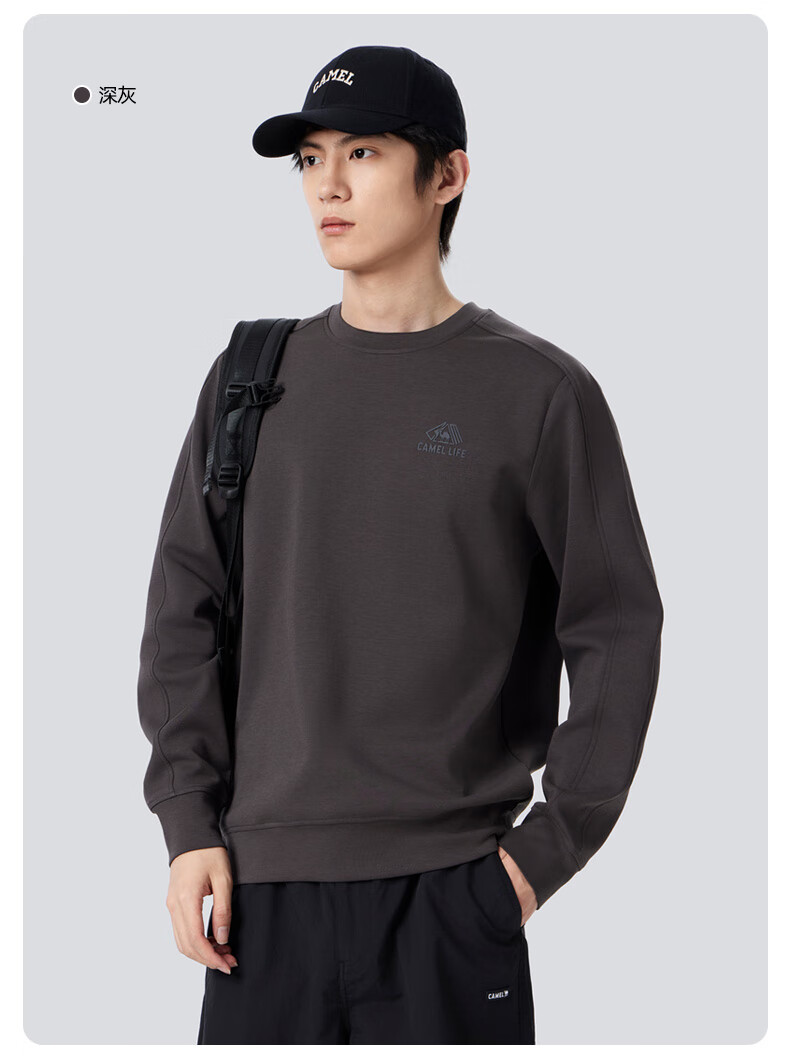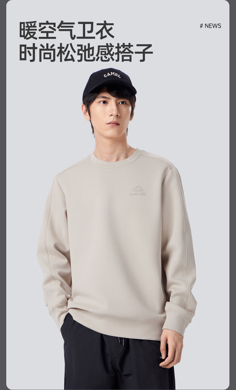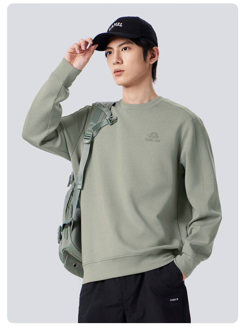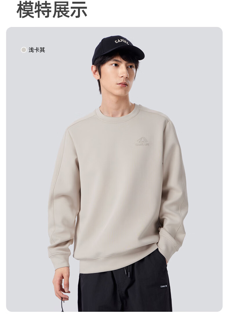 Camel (CAMEL) men's sweatshirt autumn and winter slightly wide thickened warm round neck pullover fashion trend long sleeve M34CAQN606
