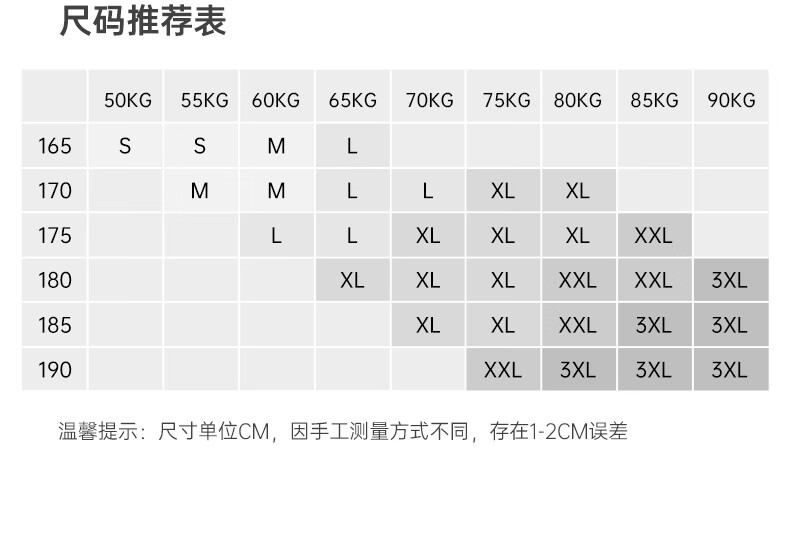 China (cm) 165 / 88-90 170 / 96-98 175 / 108-110 180 / 118-122 185 / 126-130