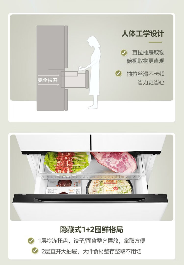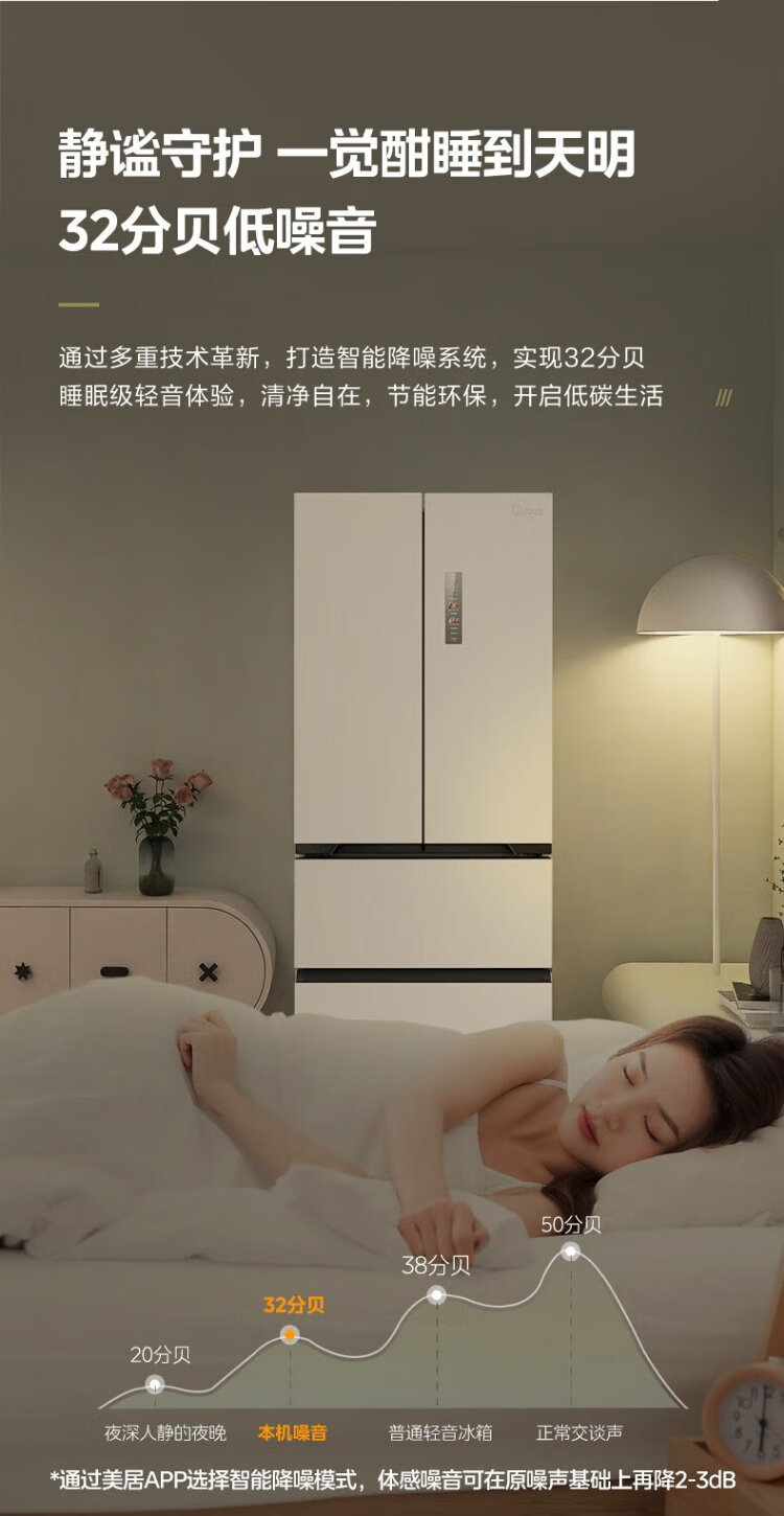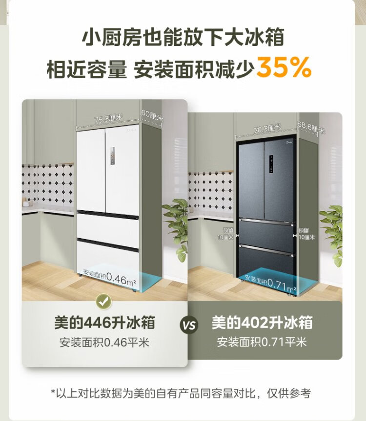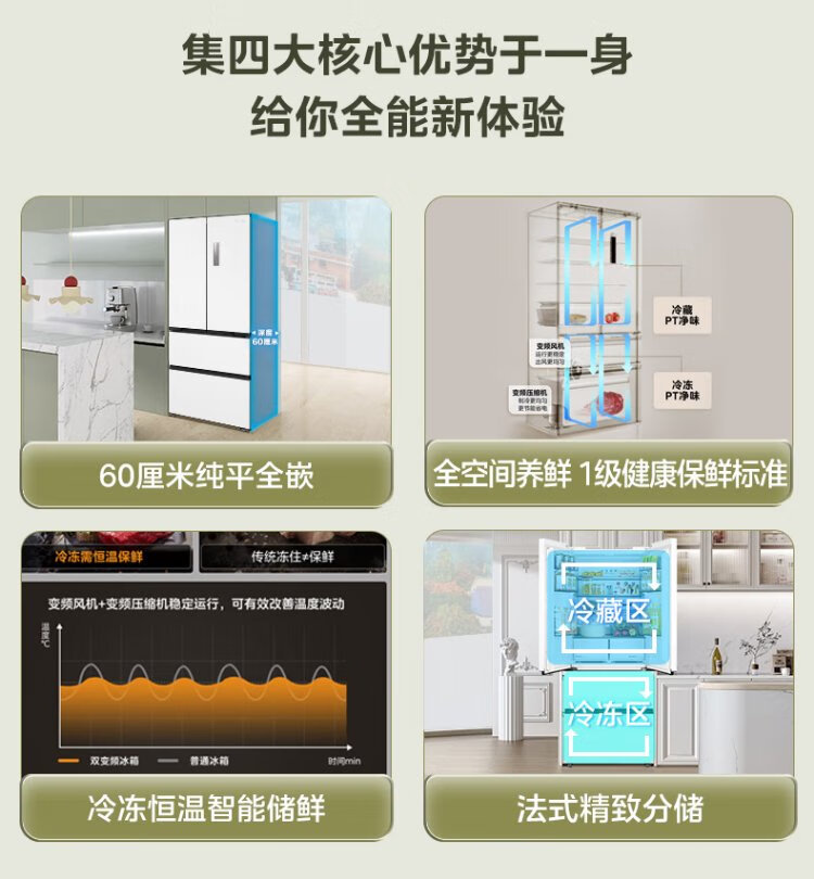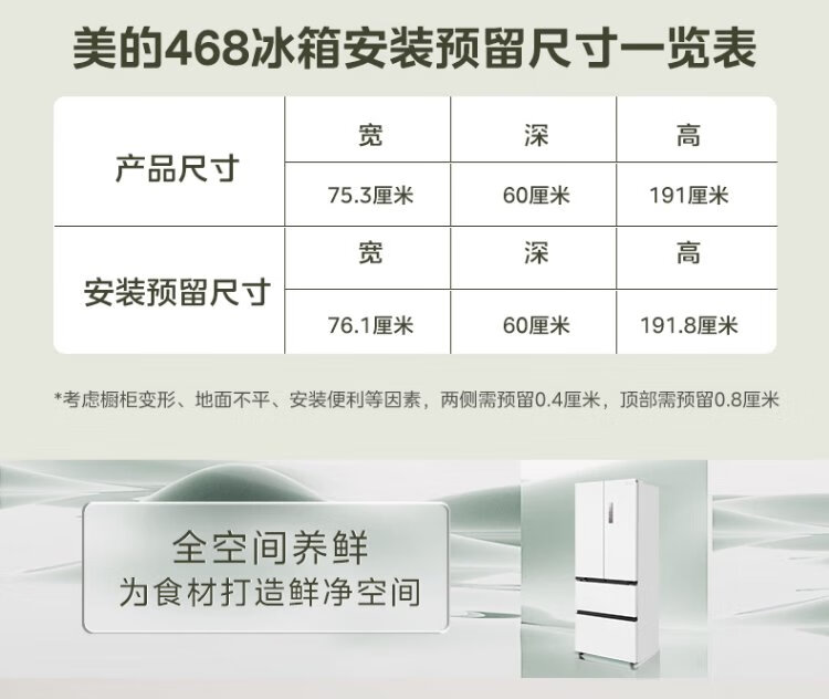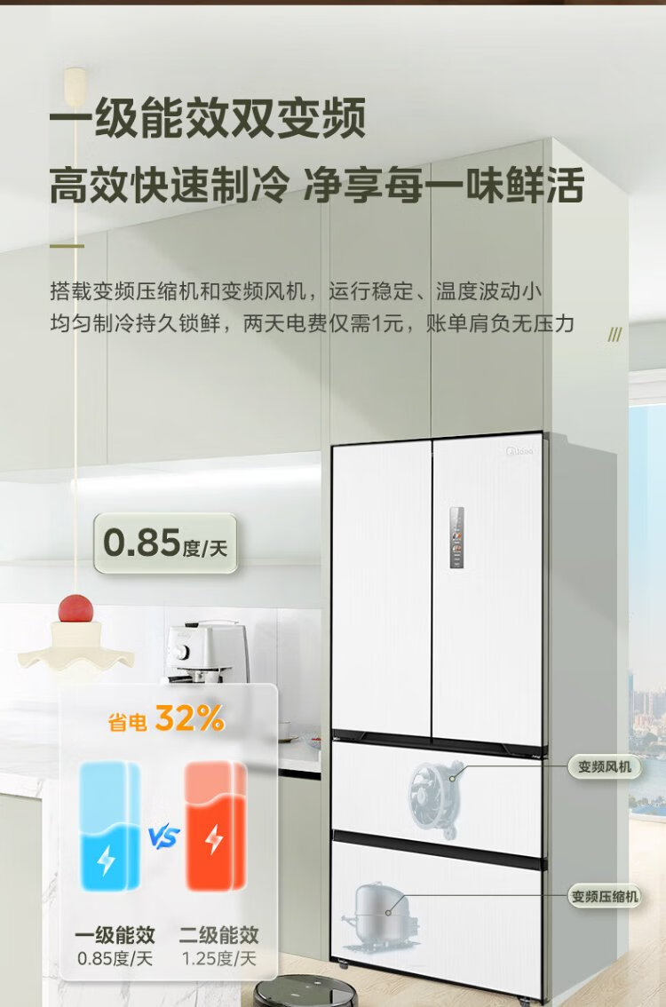 Midea 468 French multi-door four-door ultra-thin flat screen fully embedded bottom cooling first-class energy efficiency frost-free frequency conversion large capacity household refrigerator MR-468WUFPZE 20% national subsidy