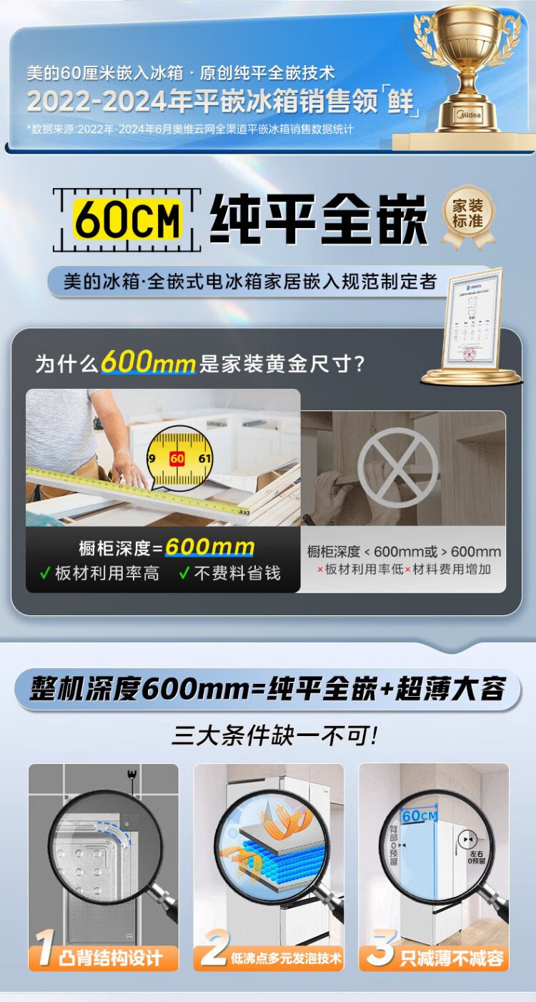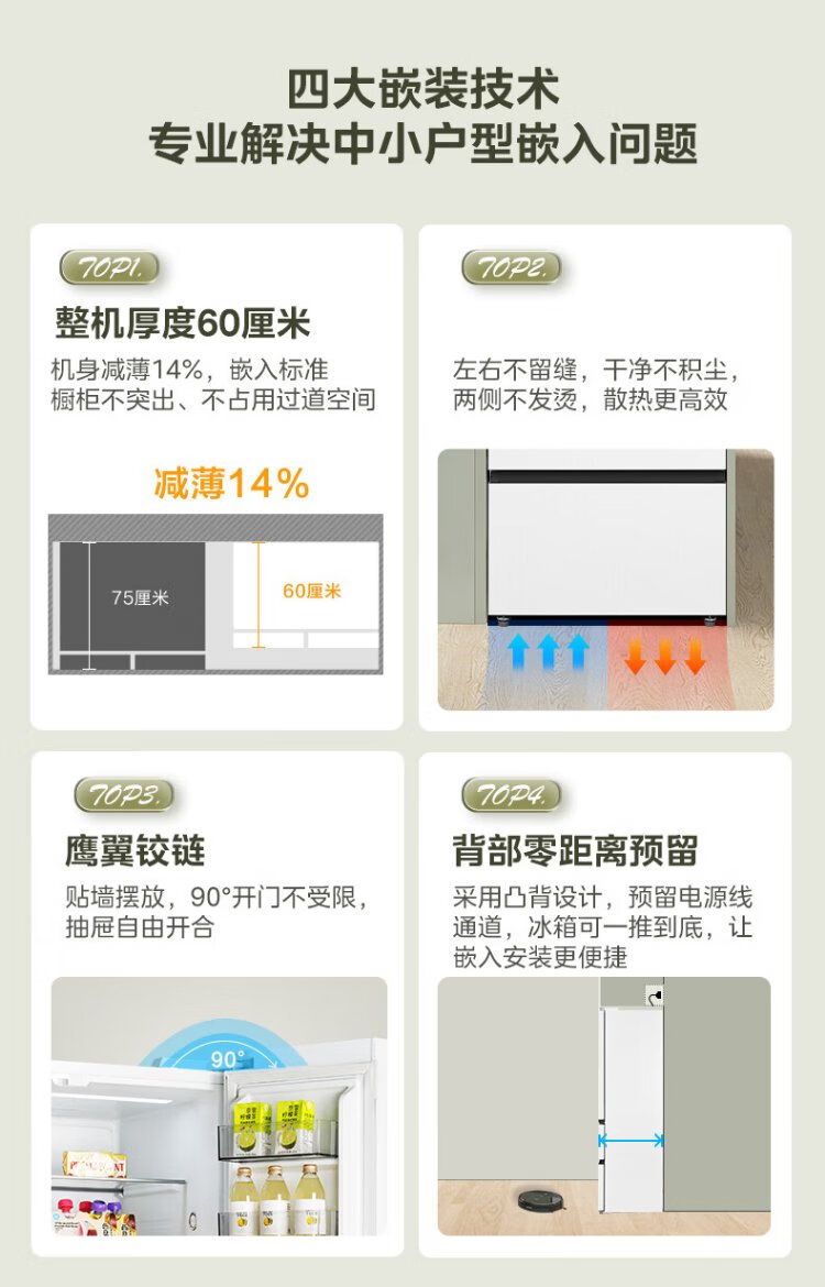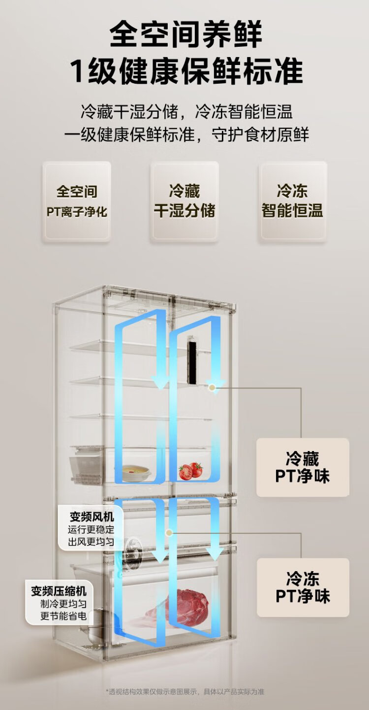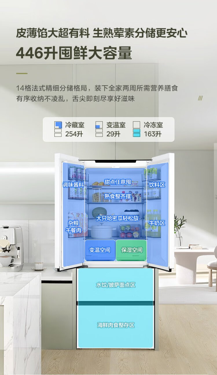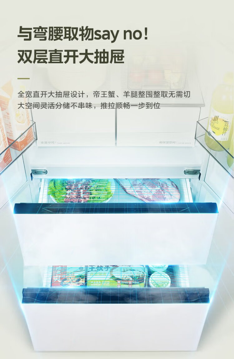 Midea 468 French multi-door four-door ultra-thin flat screen fully embedded bottom cooling first-class energy efficiency frost-free frequency conversion large capacity household refrigerator MR-468WUFPZE 20% national subsidy