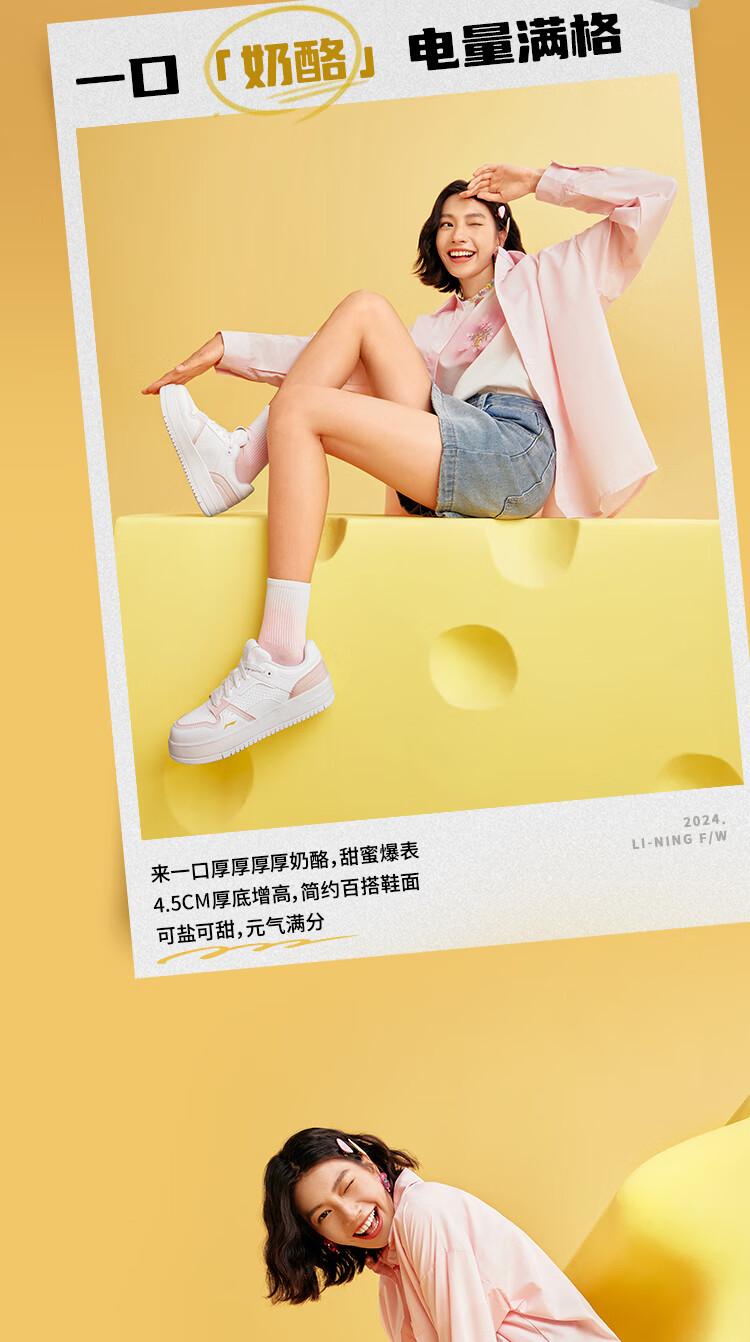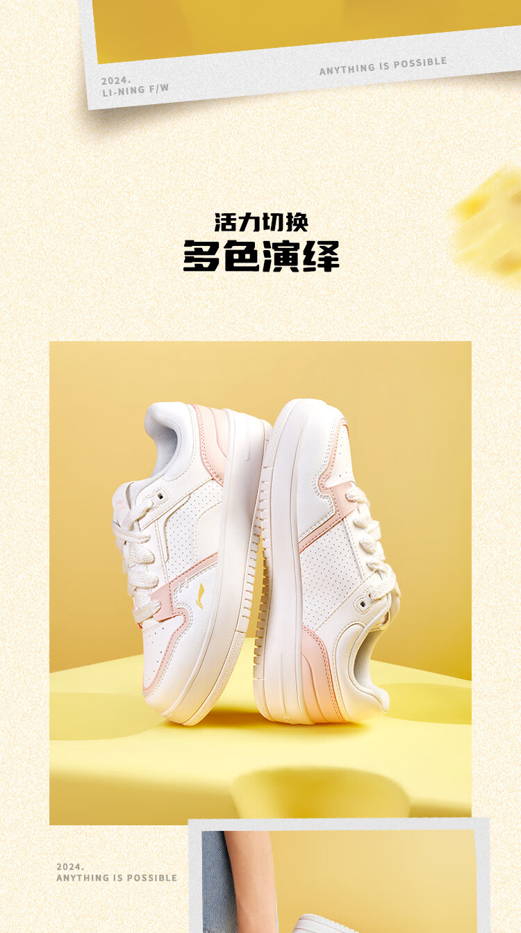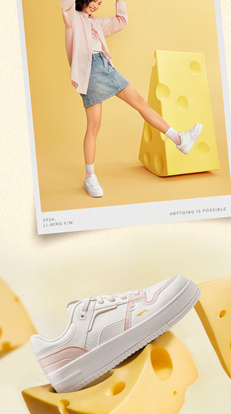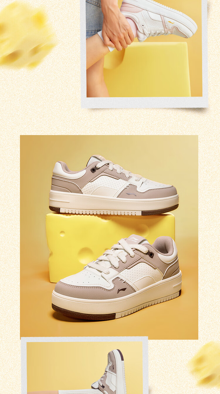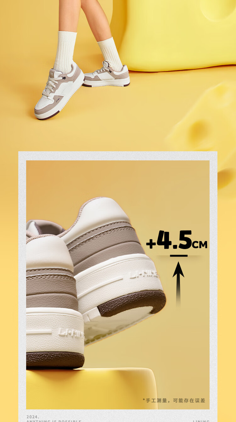 Li Ning Cheese | Casual shoes for women, lightweight thick soles, heightening stitching, trendy and versatile sports shoes AGCU366