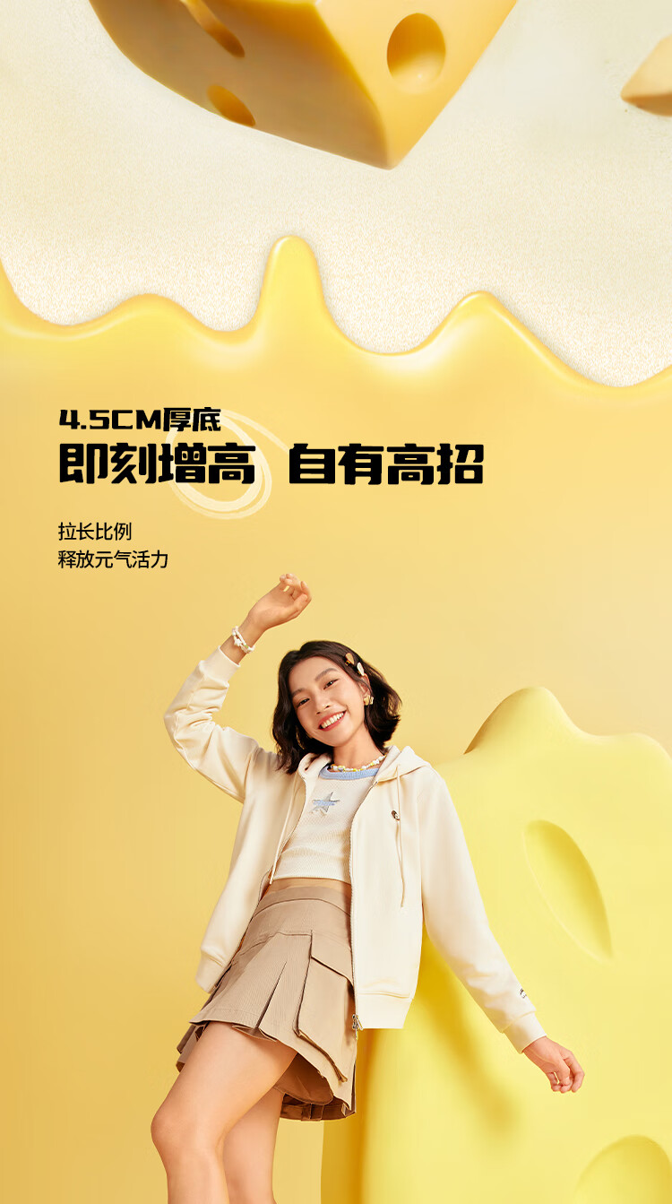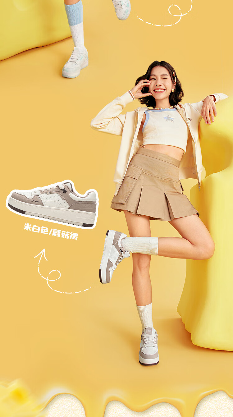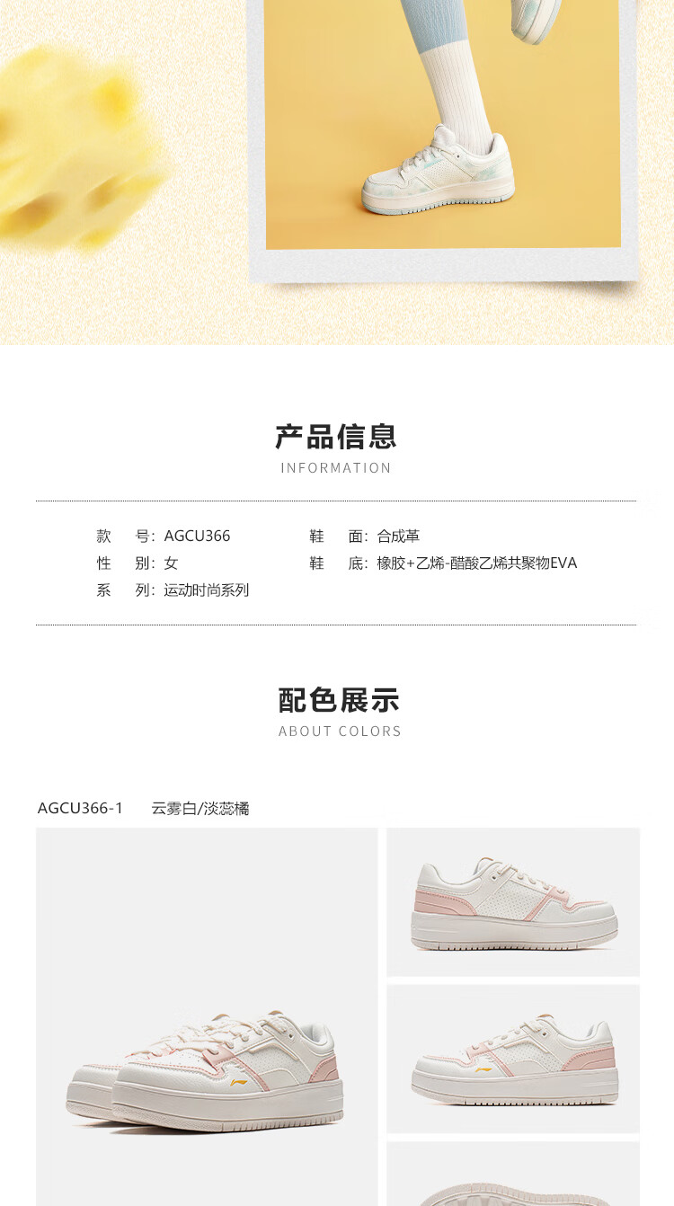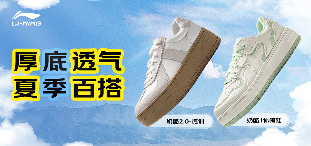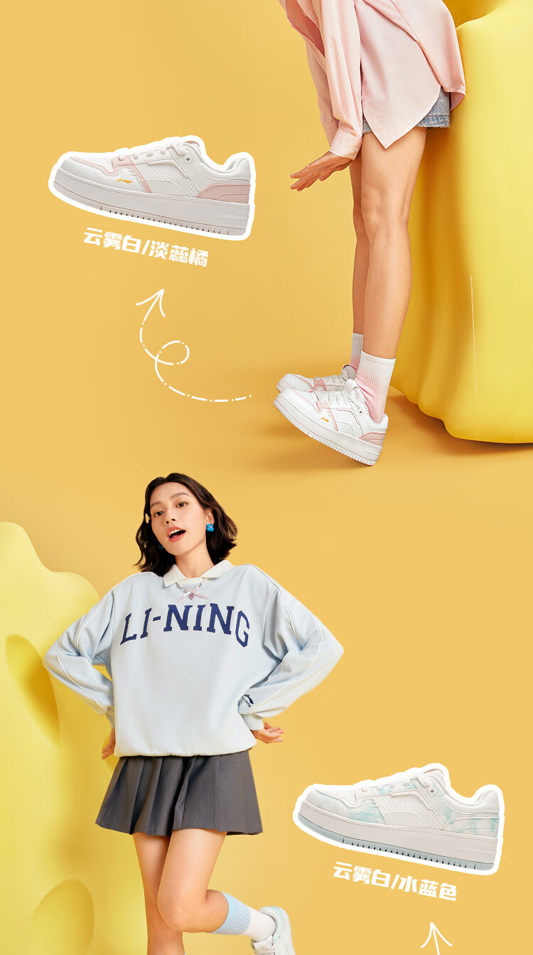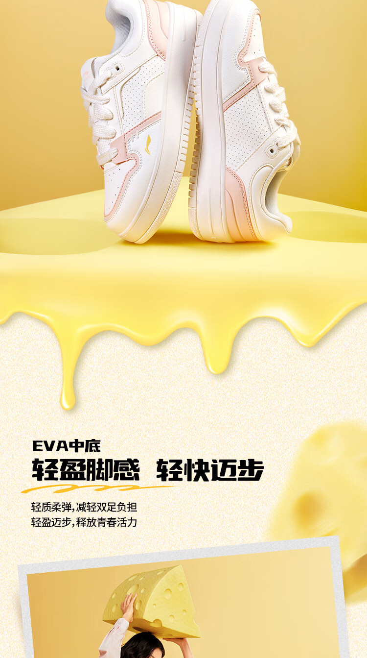 Li Ning Cheese | Casual shoes for women, lightweight thick soles, heightening stitching, trendy and versatile sports shoes AGCU366