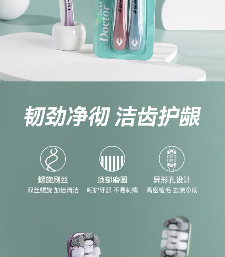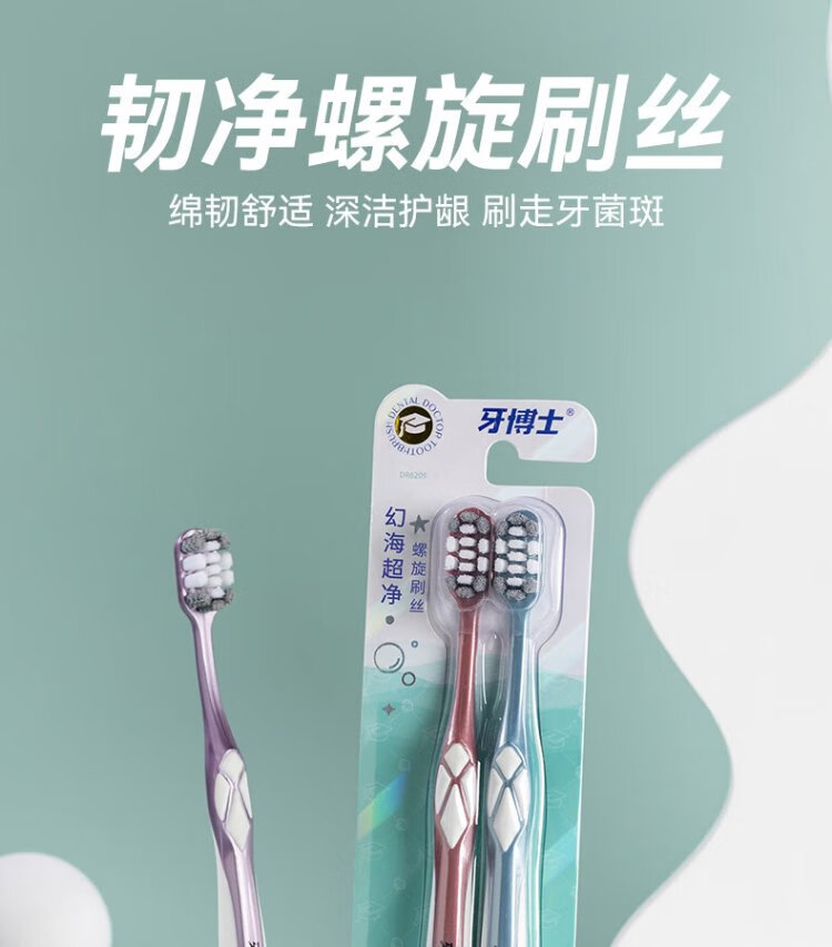 Dr. Tooth Spiral Soft-bristled Toothbrush Cleans Teeth and Protects Gums, Wide Head 2 Pack