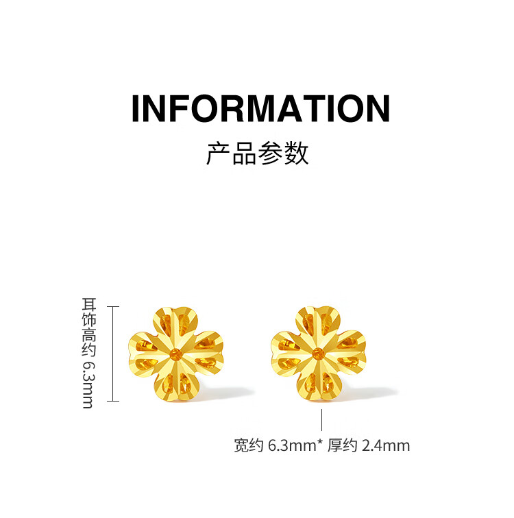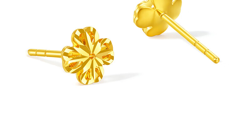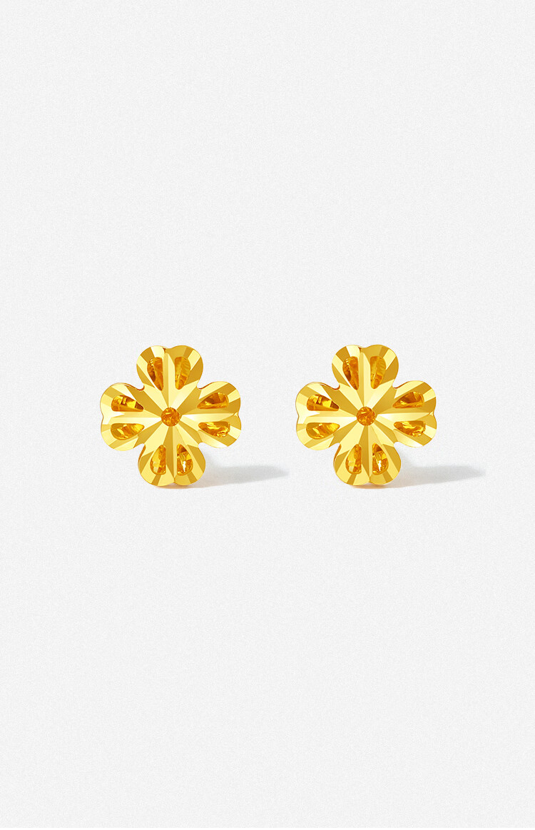Saturday blessing yellow 18K gold earrings, gold four-leaf clover earrings, birthday gift for women C0913580 pair