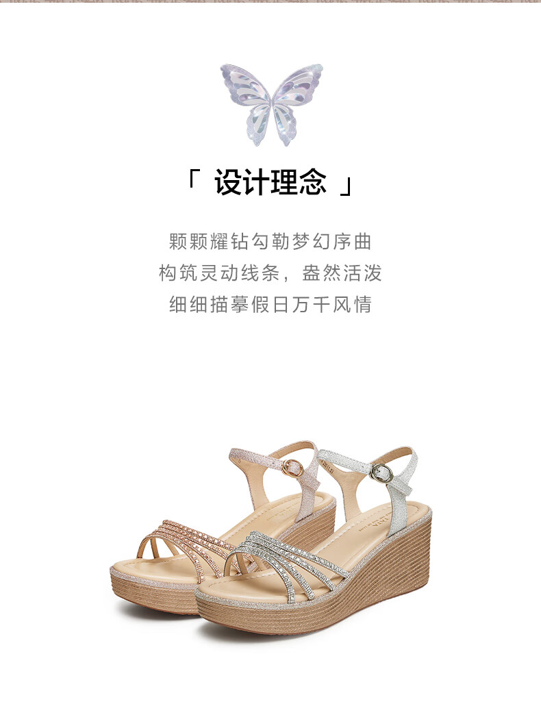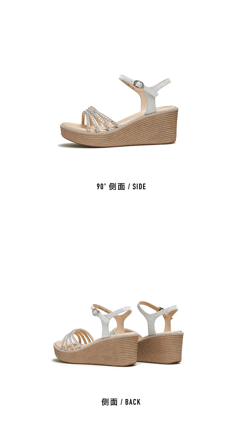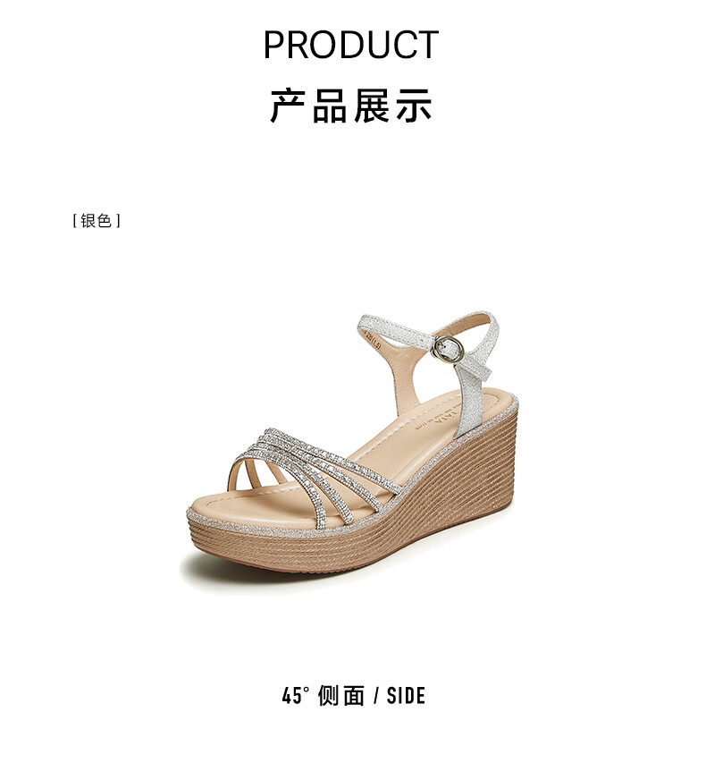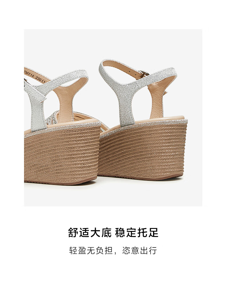 TATA's beautiful wedge sandals for women's vacation strap fashion sandals summer 7MY14BL4 silver 37