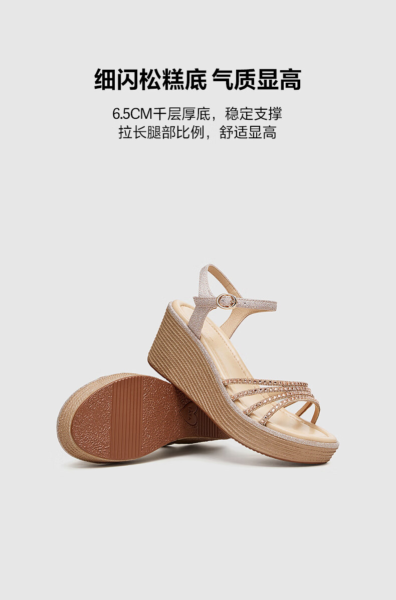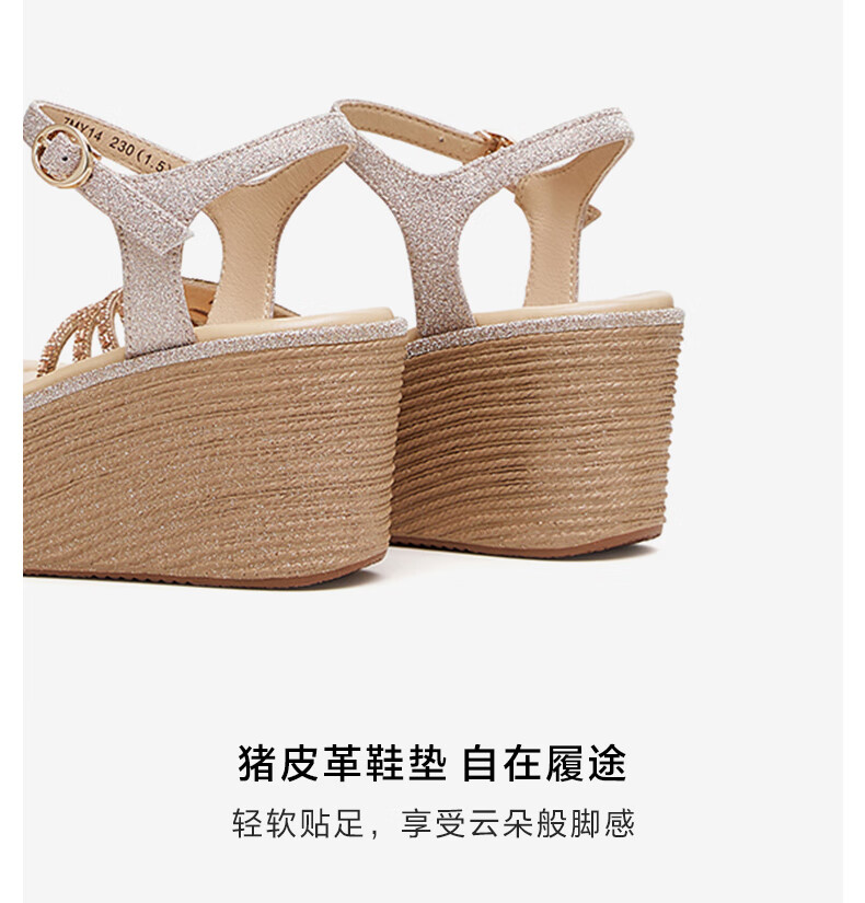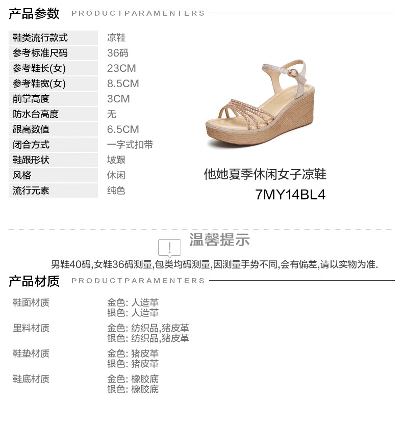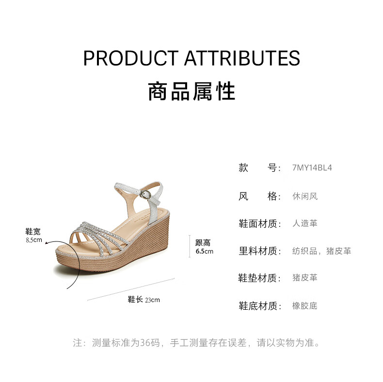 TATA's beautiful wedge sandals for women's vacation strap fashion sandals summer 7MY14BL4 silver 37