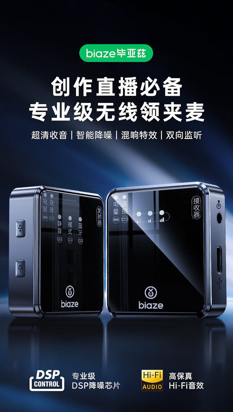 Biaz Wireless Lavalier Microphone One-to-One Anchor Live Recording Equipment Outdoor Short Video Radio Microphone Douyin Karaoke Professional Noise Reduction Portable Wireless Microphone MK27