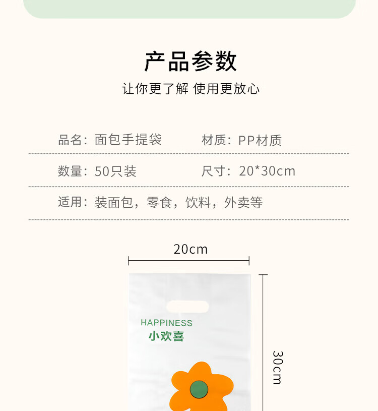 Baijie bread packaging tote bag gift bag baking tote bag dessert cake packaging bag food packaging bag 50 pack