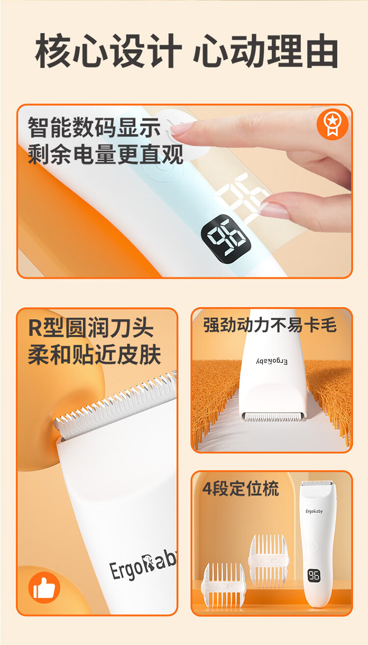 ERGOBABY Pet Shaver, Dog Electric Clipper Hair Clipper, Electric Clipper Trimmer, Pet Cat Shaver, Waterproof White