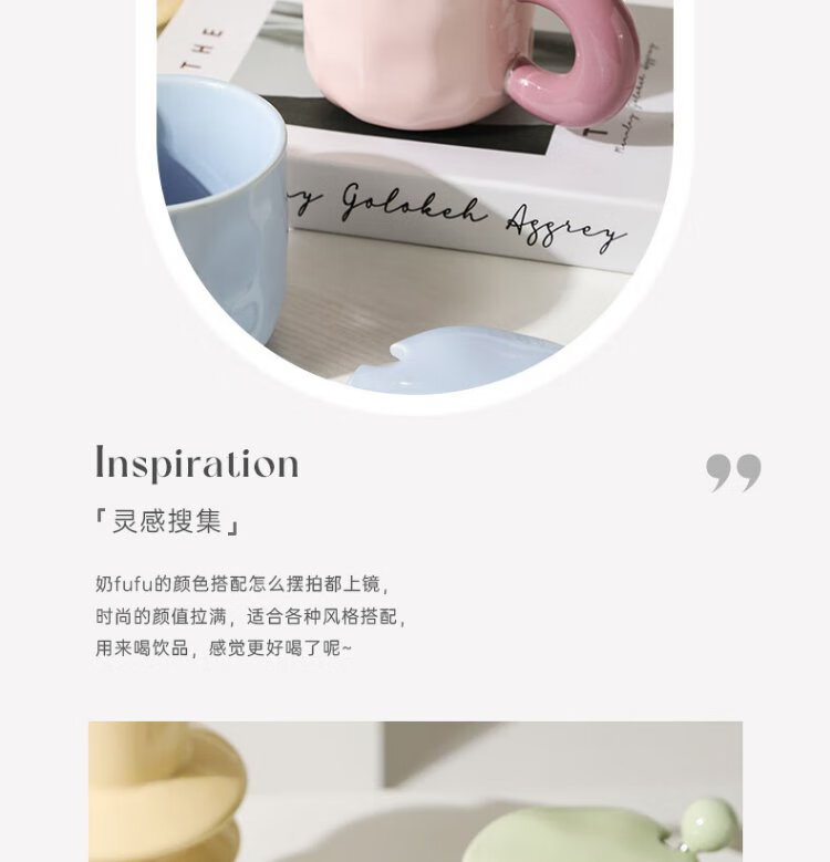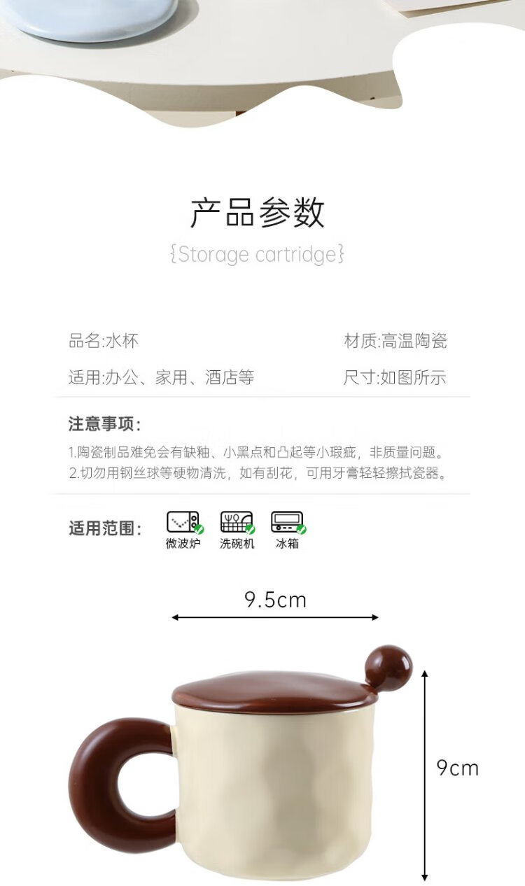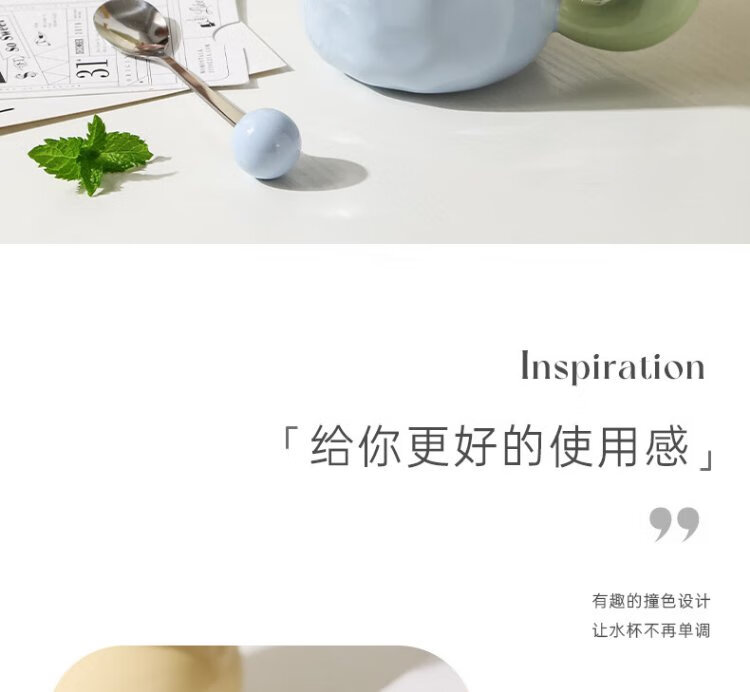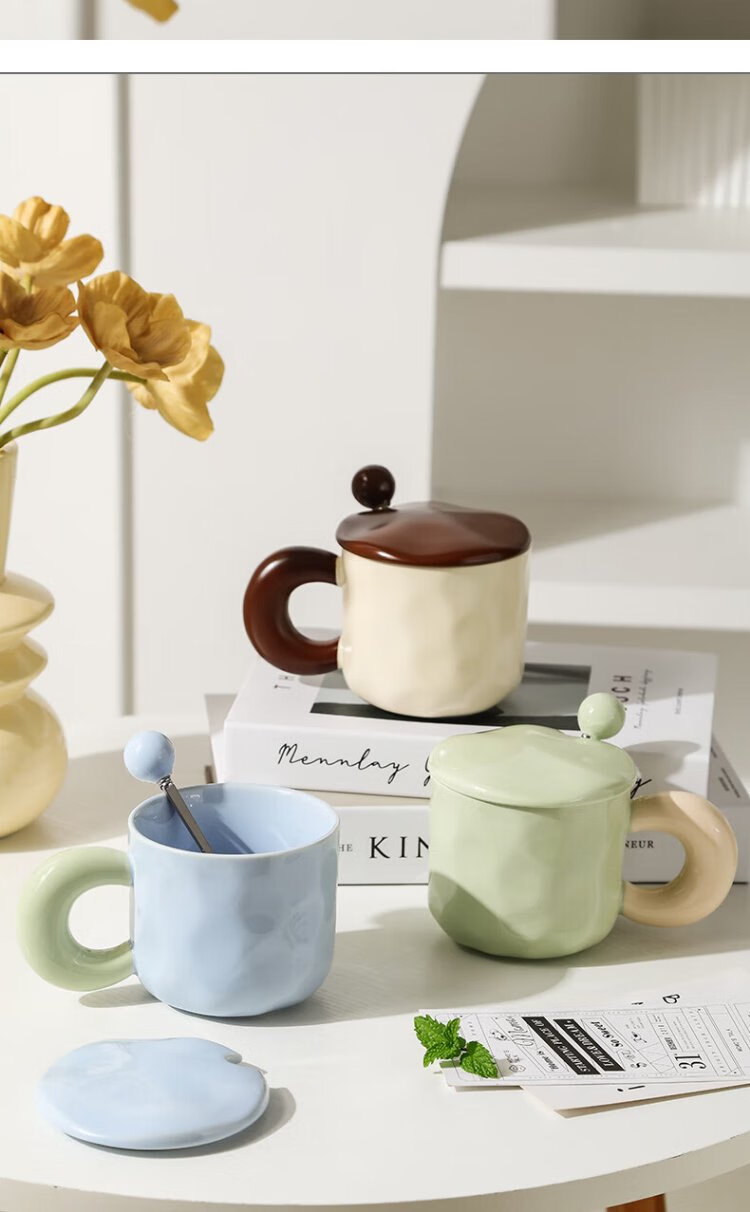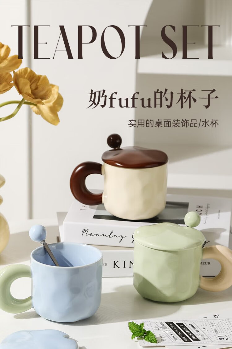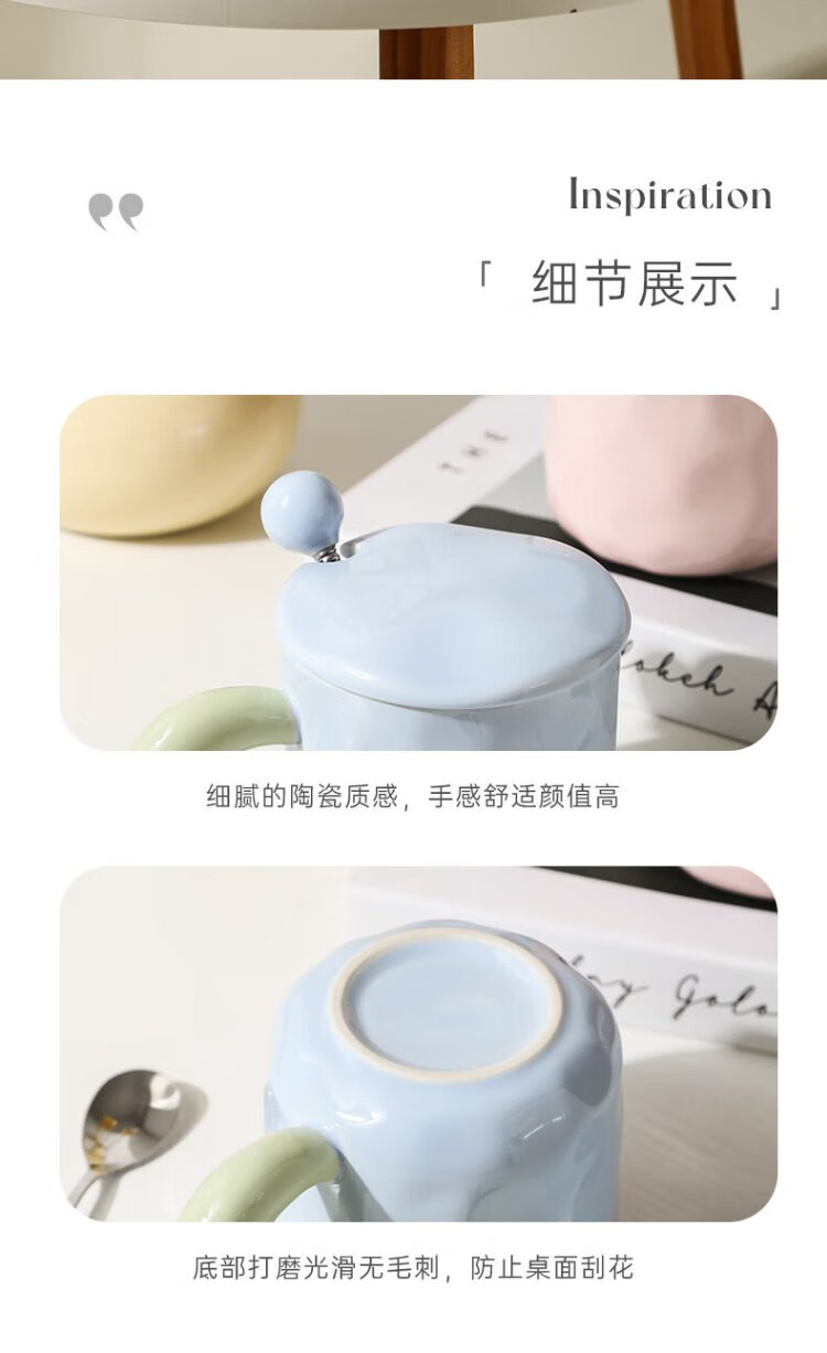 Jiwu Forest Ceramic Mug with Spoon Lid Cup Coffee Cup Couple Tea Cup Men and Women Large Capacity Yellow 420ml