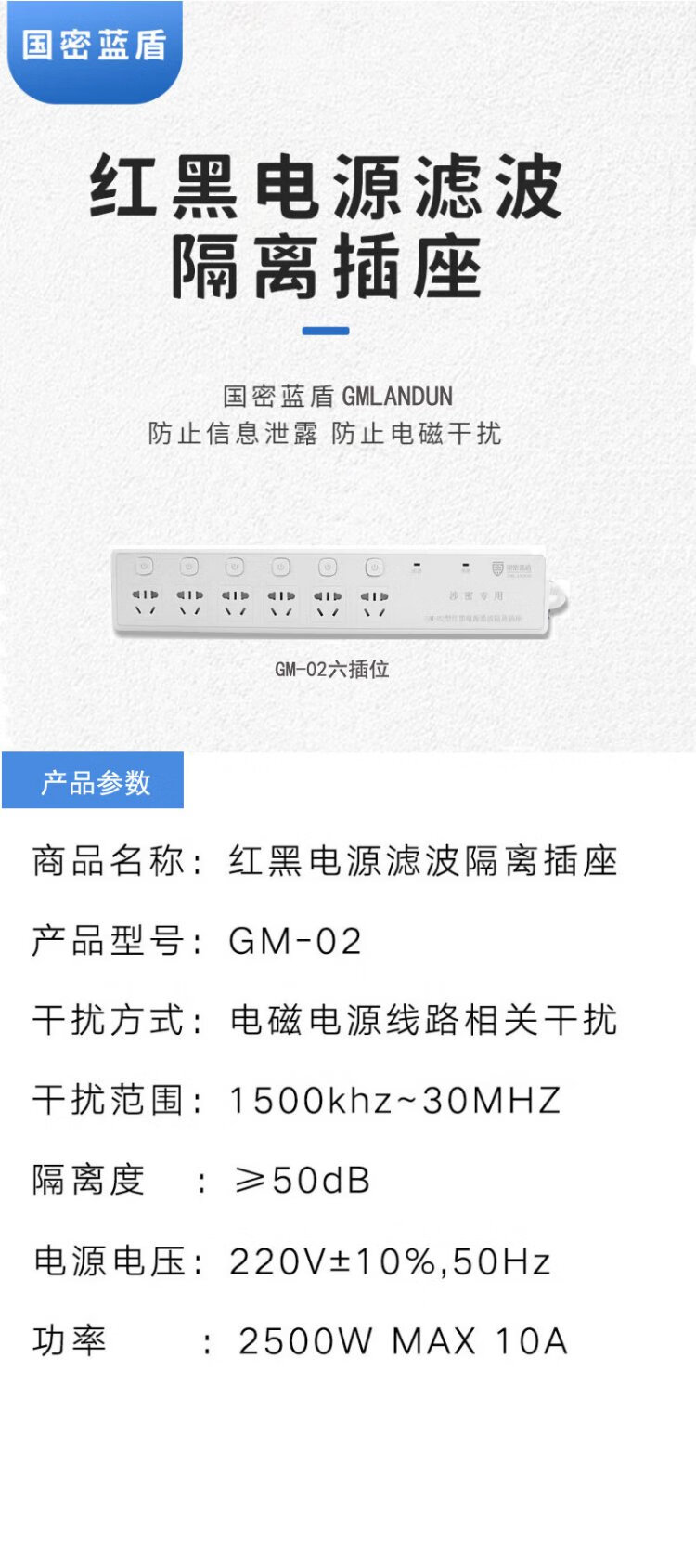 GMLANDUN国密蓝盾GM-02红黑电源滤波隔离插座六插位--1.5米线