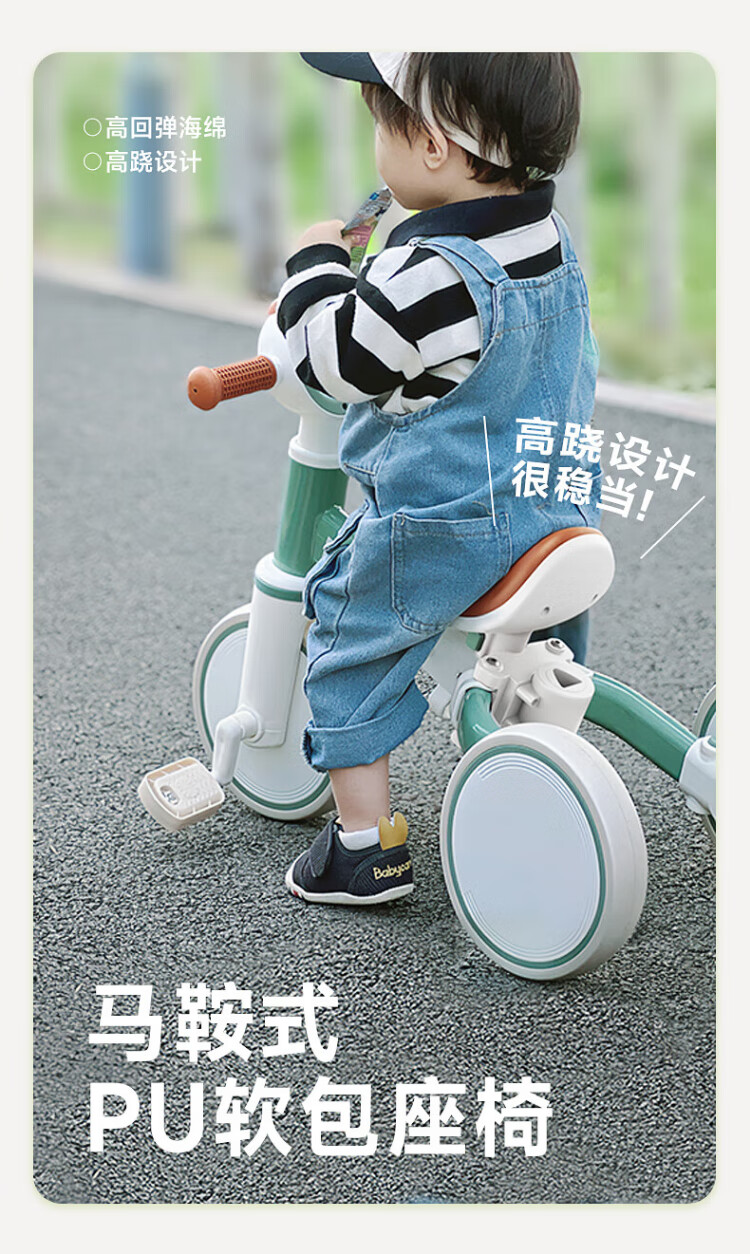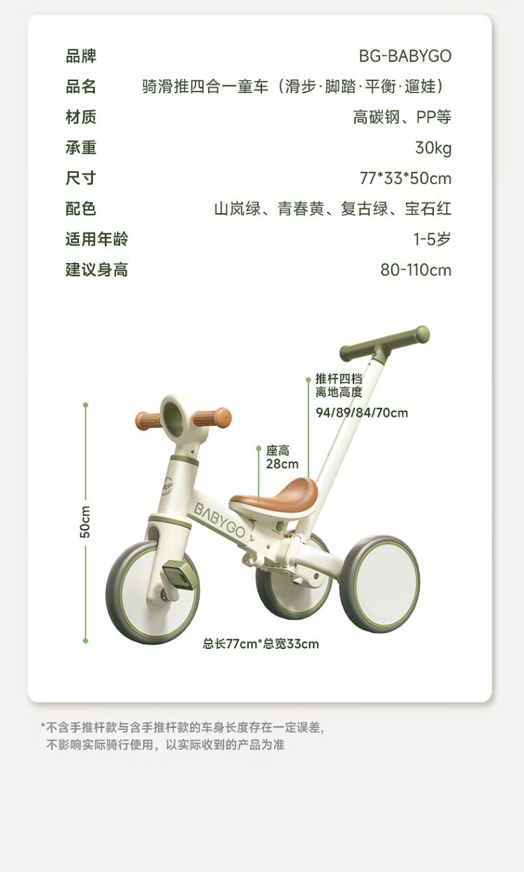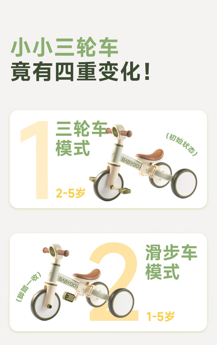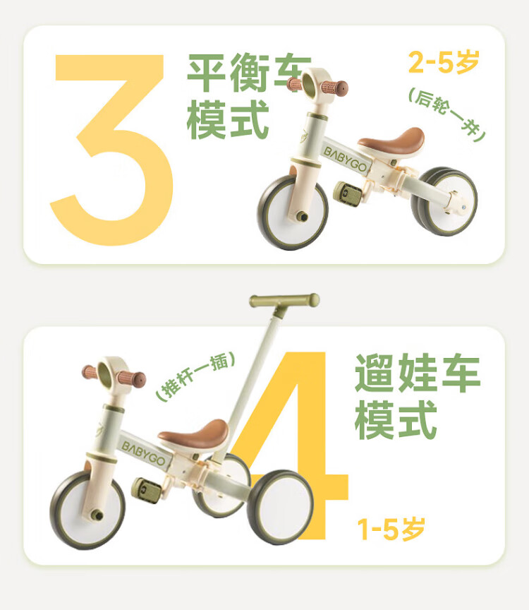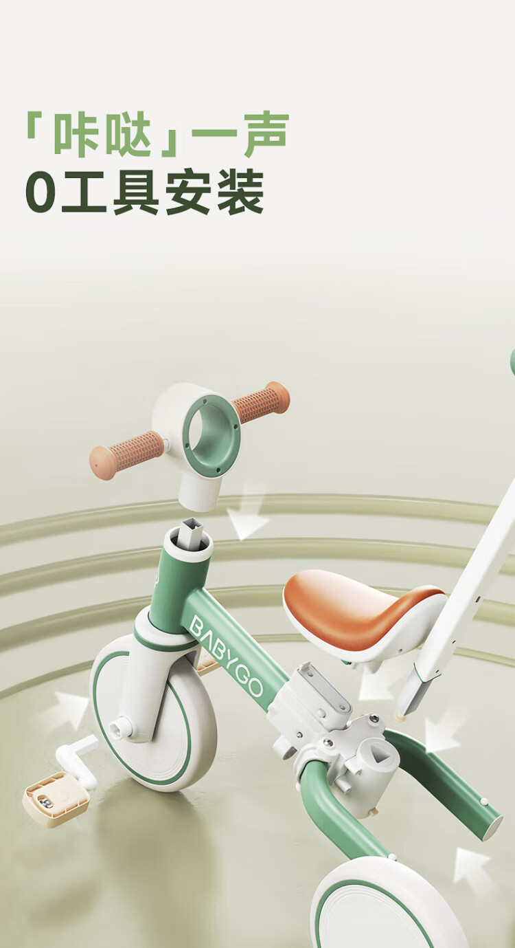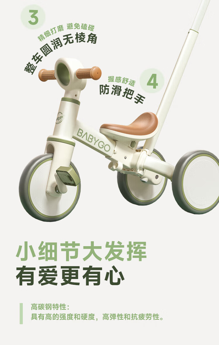 BG-BABYGO children's tricycle multifunctional bicycle bicycle 1-3 years old baby slider stroller Shanlan Green