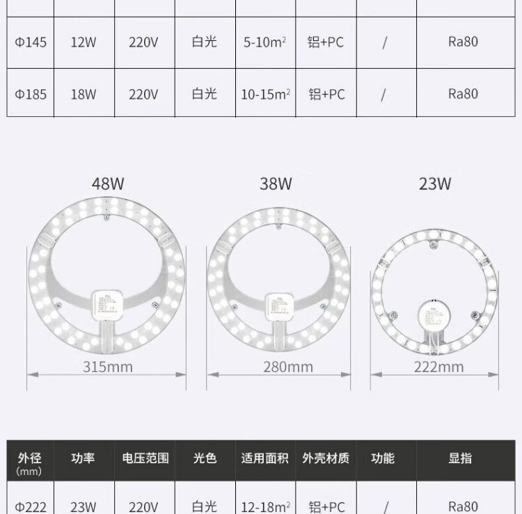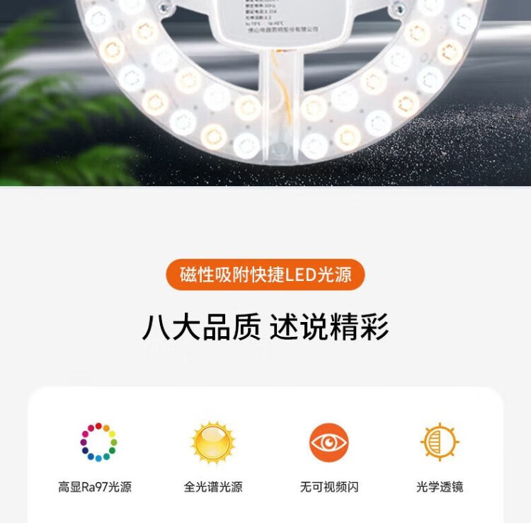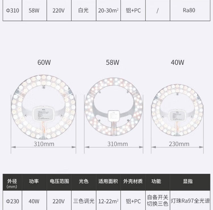 Foshan Lighting (FSL) full spectrum LED ceiling lamp replacement wick Ra97 high color rendering 58W three-color module lamp panel light source three-level color adjustment 310mm including binding posts
