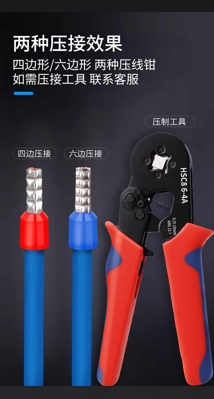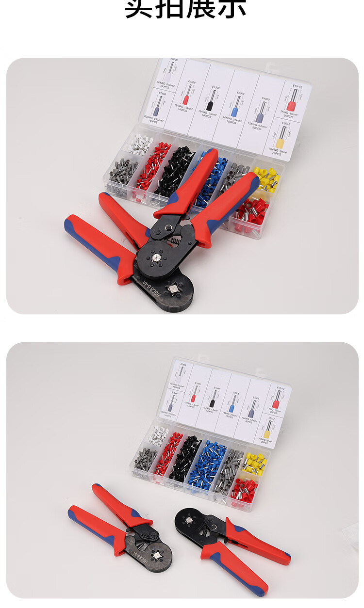 Huili's cold-pressed terminal block VE tube pin set crimping pliers wire copper nose air switch crimping cap connector artifact 800 pieces pliers 6-4A two-color