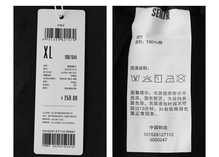 Semir casual pants men's overalls loose straight pants autumn outdoor trousers pure cotton elastic waist 101524127112