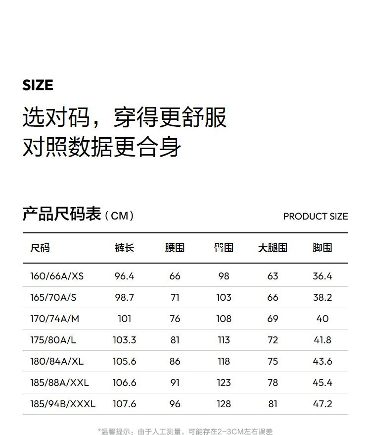 China (cm) 160-165/84-86 165-170 / 88-90 167-172 / 92-96 168-173 / 98-102 170-176 / 106-110