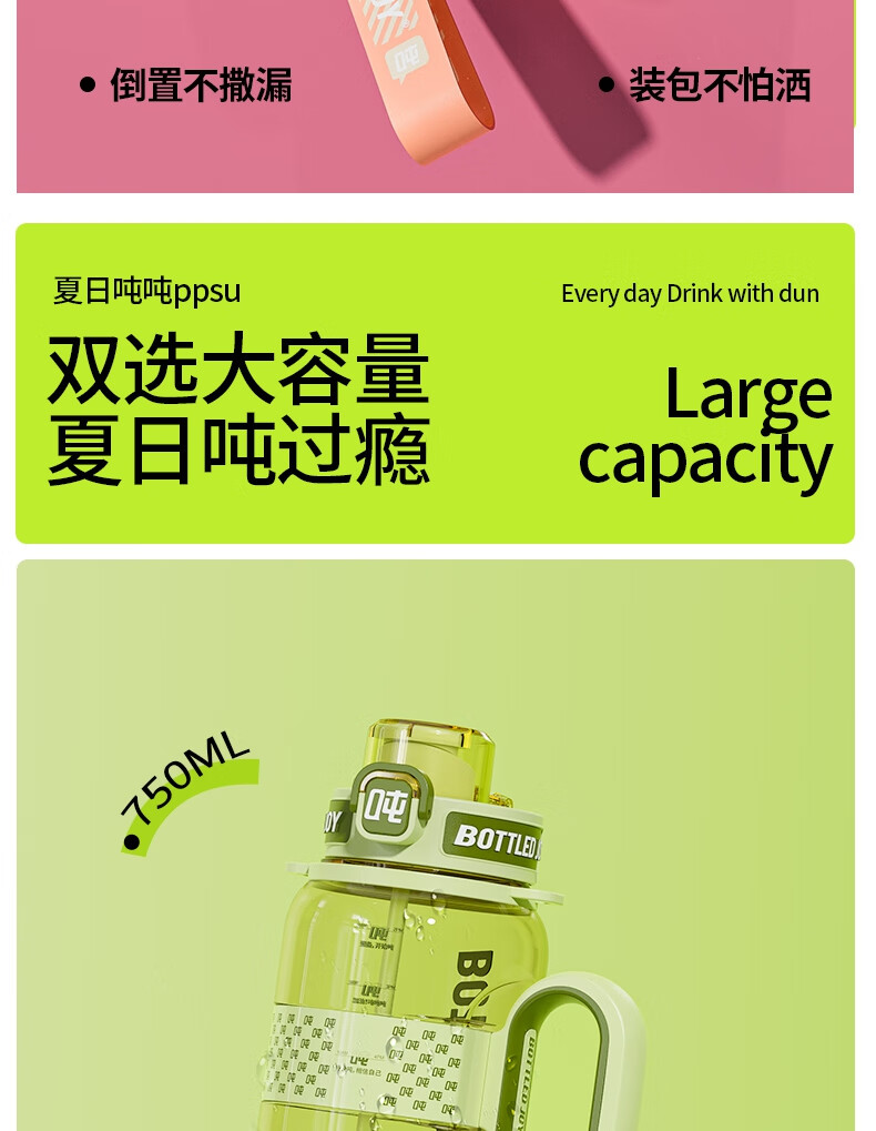 BOTTLED JOY Summer Ton Ton Cup Large Capacity PPSU Wang Yibo Water Cup Outdoor Sports Fitness Space Cup Kettle