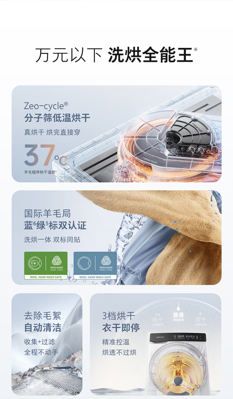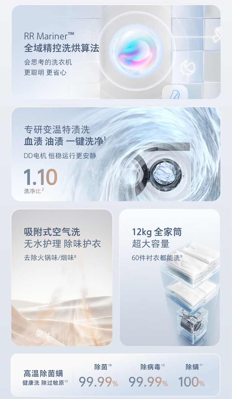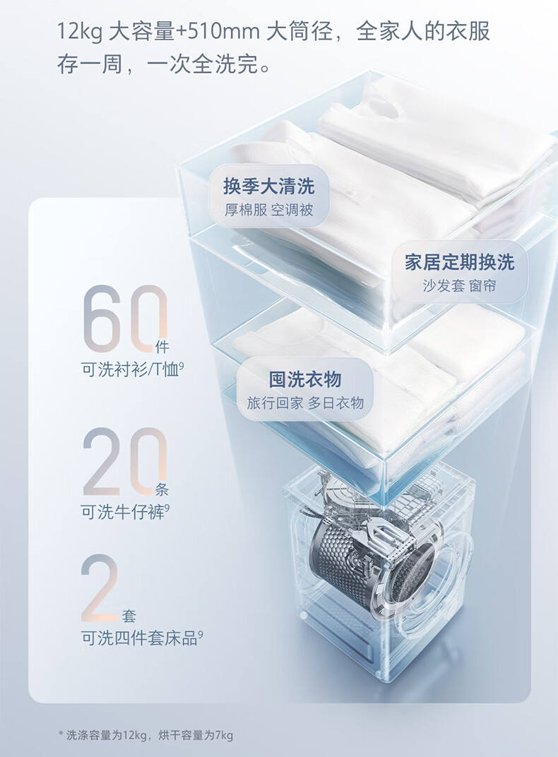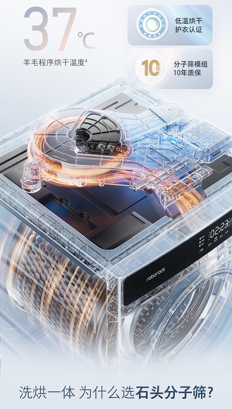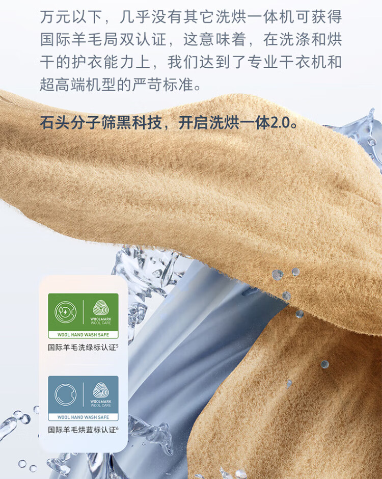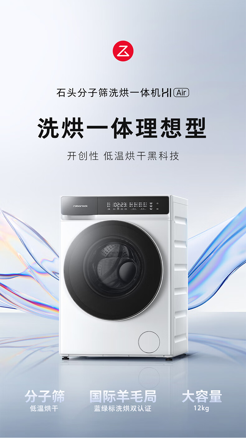 Stone Molecular Sieve Washing and Drying Machine H1 Air National Subsidy 20% Fully Automatic Tumble Drying Washing Machine 12KG Wool Self-Cleaning Low Temperature Drying XQGH120RR12