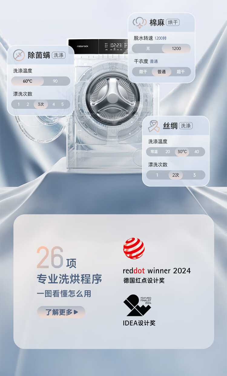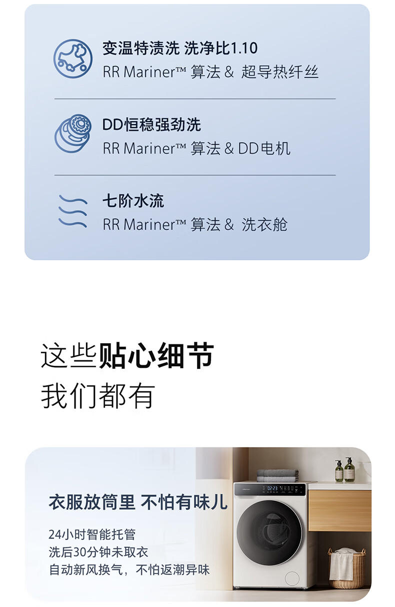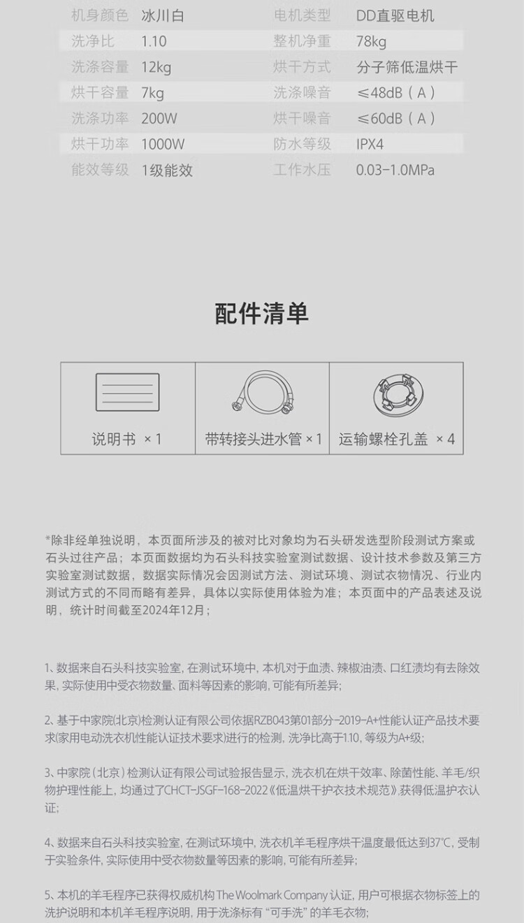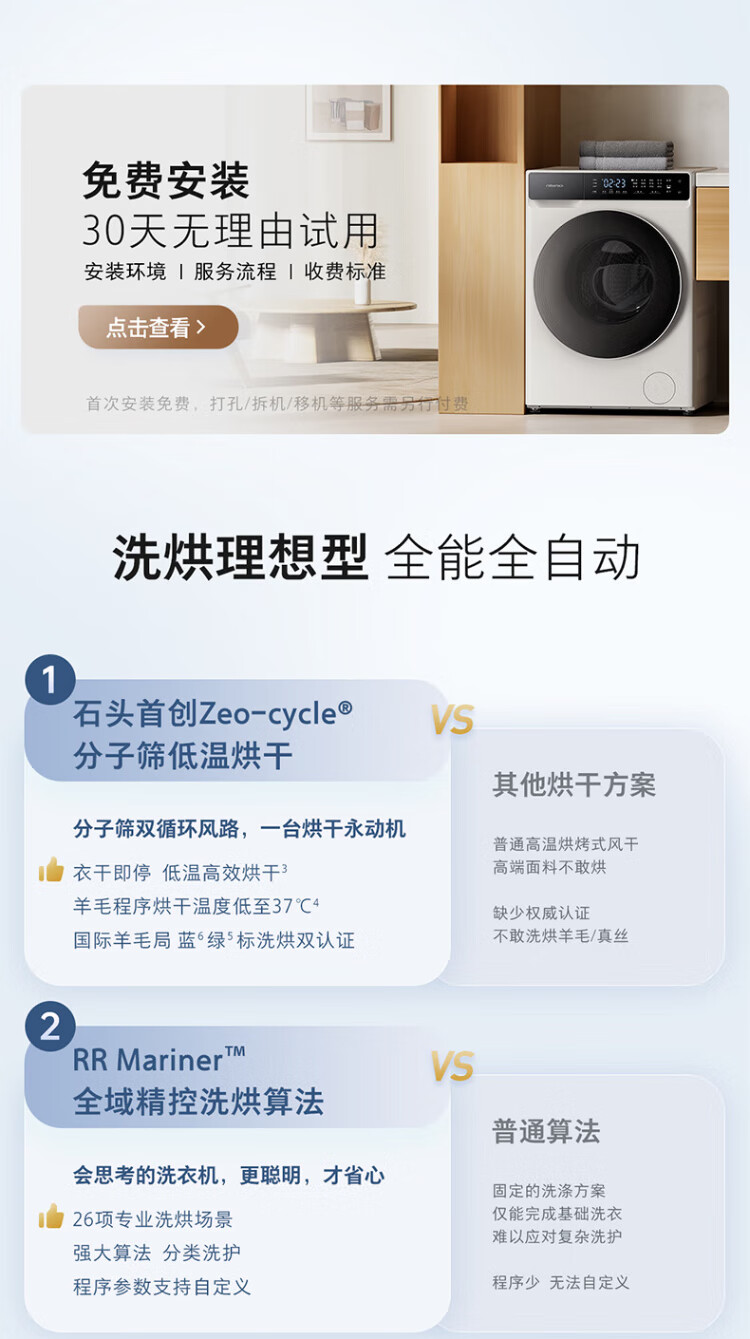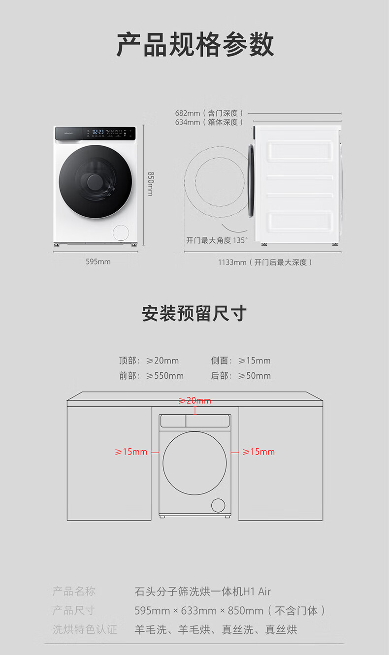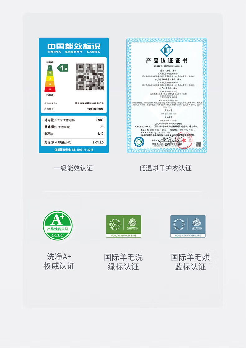 Stone Molecular Sieve Washing and Drying Machine H1 Air National Subsidy 20% Fully Automatic Tumble Drying Washing Machine 12KG Wool Self-Cleaning Low Temperature Drying XQGH120RR12