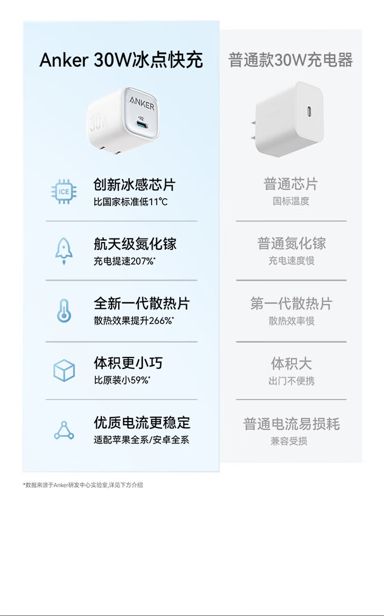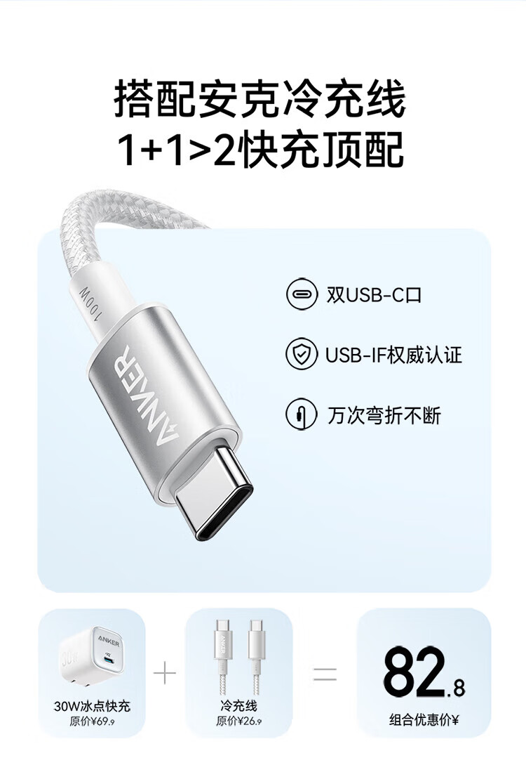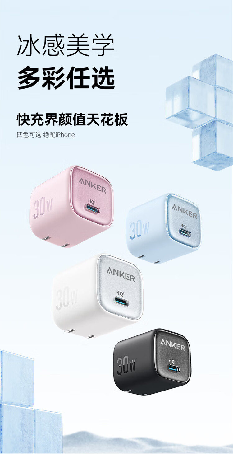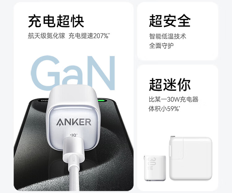 ANKER Carga de punto de congelación de 30 W Cargador Apple 17 tipo c Carga rápida PD nitruro de galio adecuado para iPhone16promax15/14Apple teléfono móvil iPad enchufe blanco