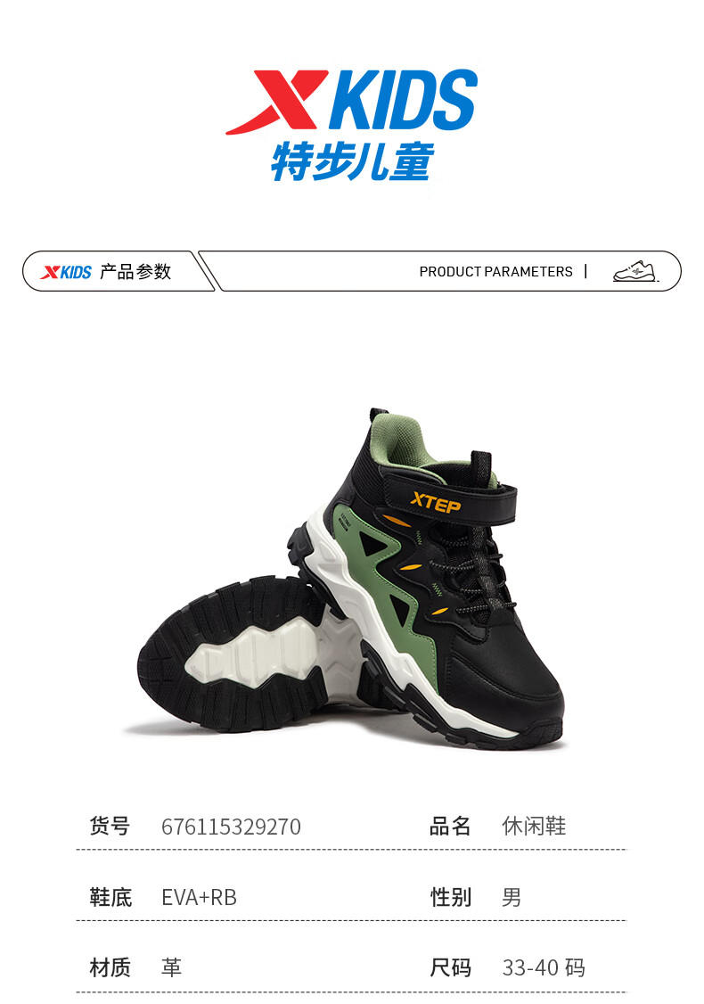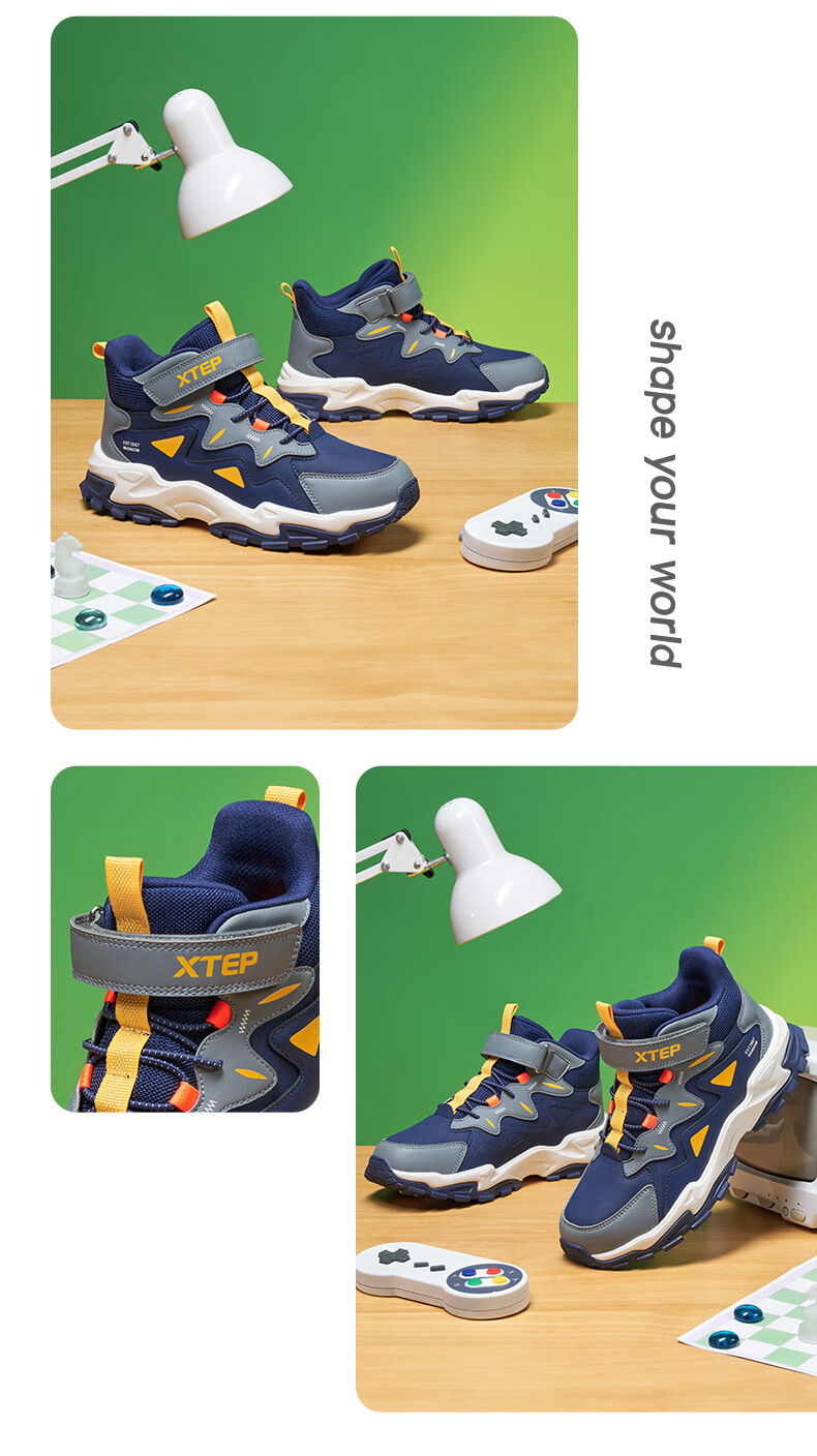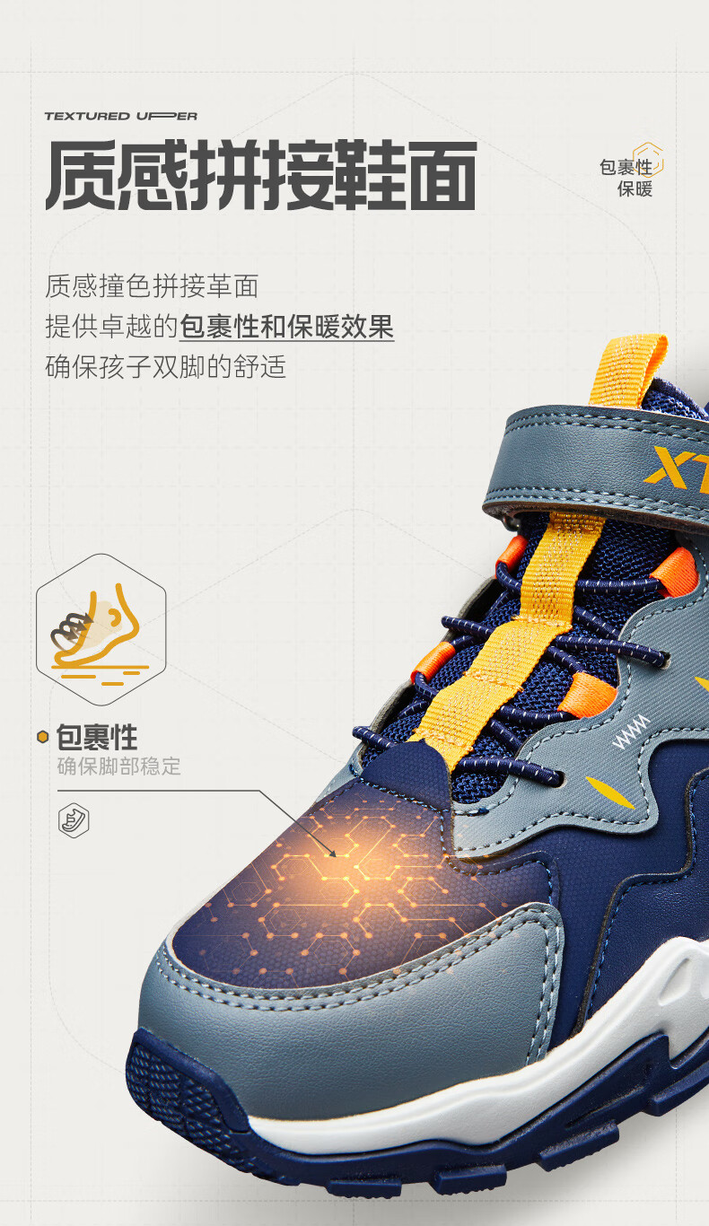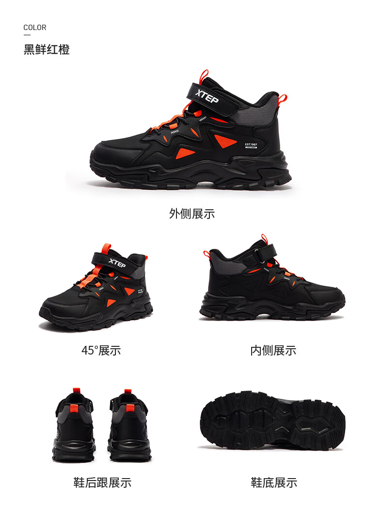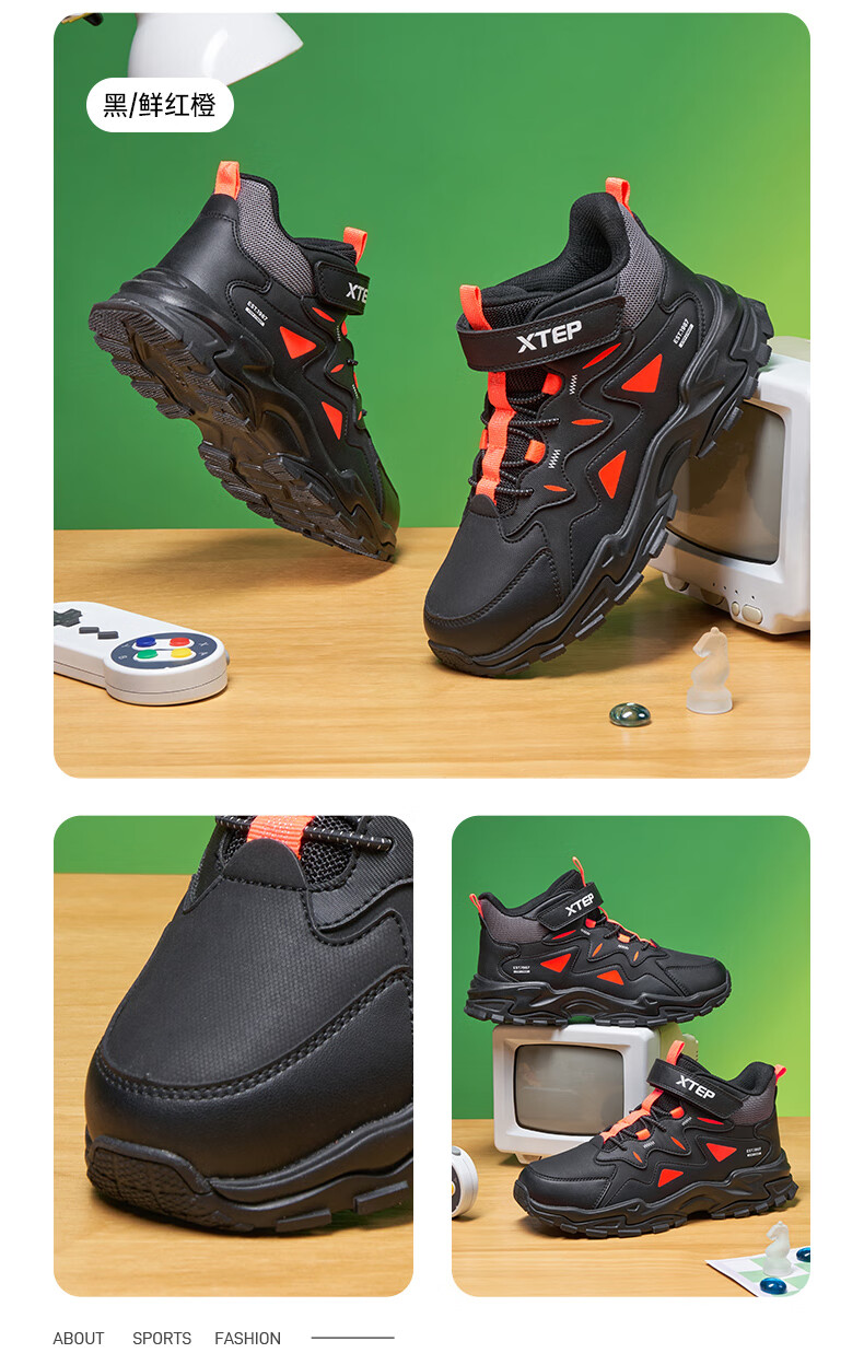 XTEP children's leather leather windproof and warm thick-soled casual shoes with elevated straps black/XTEP white/challenge red size 37