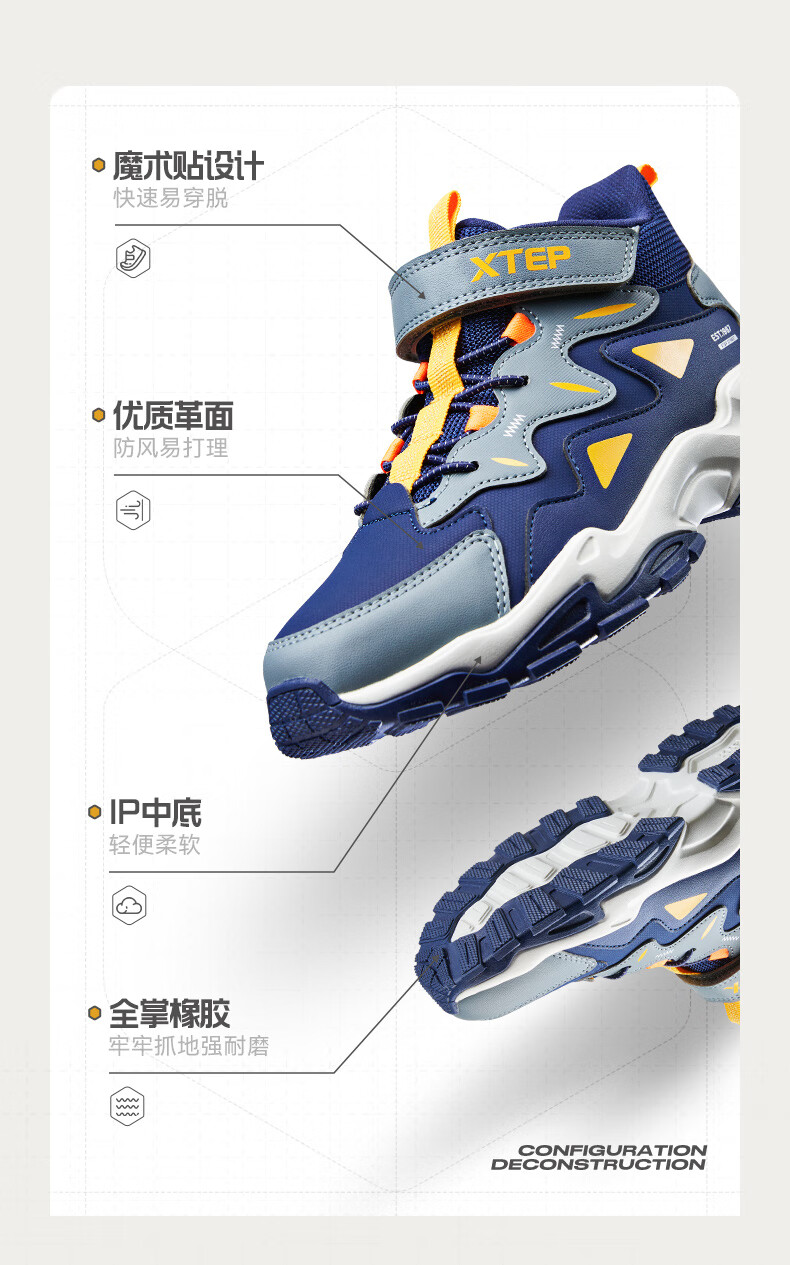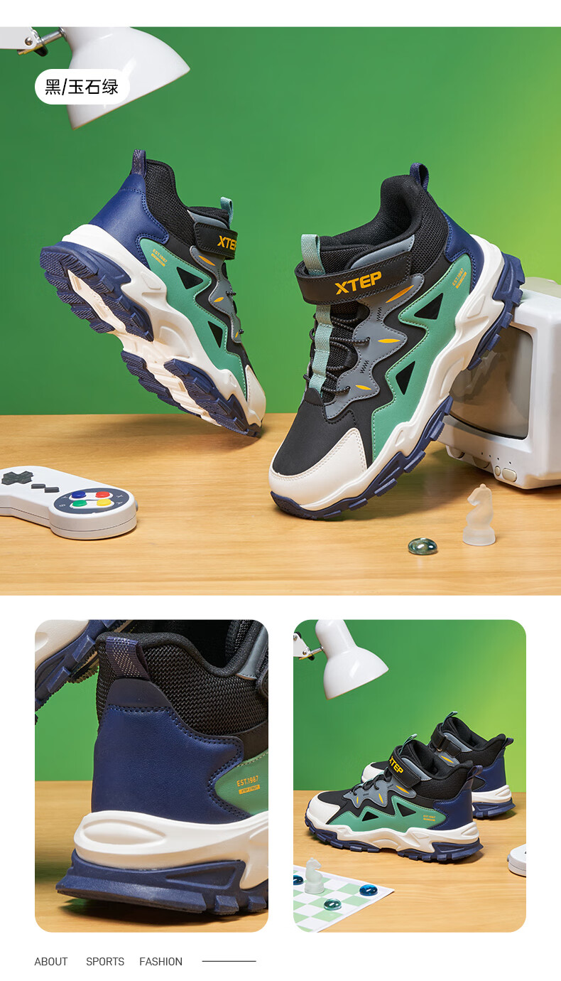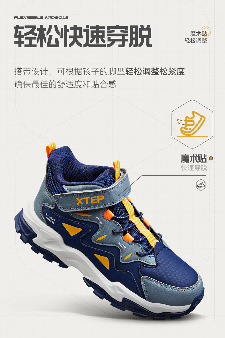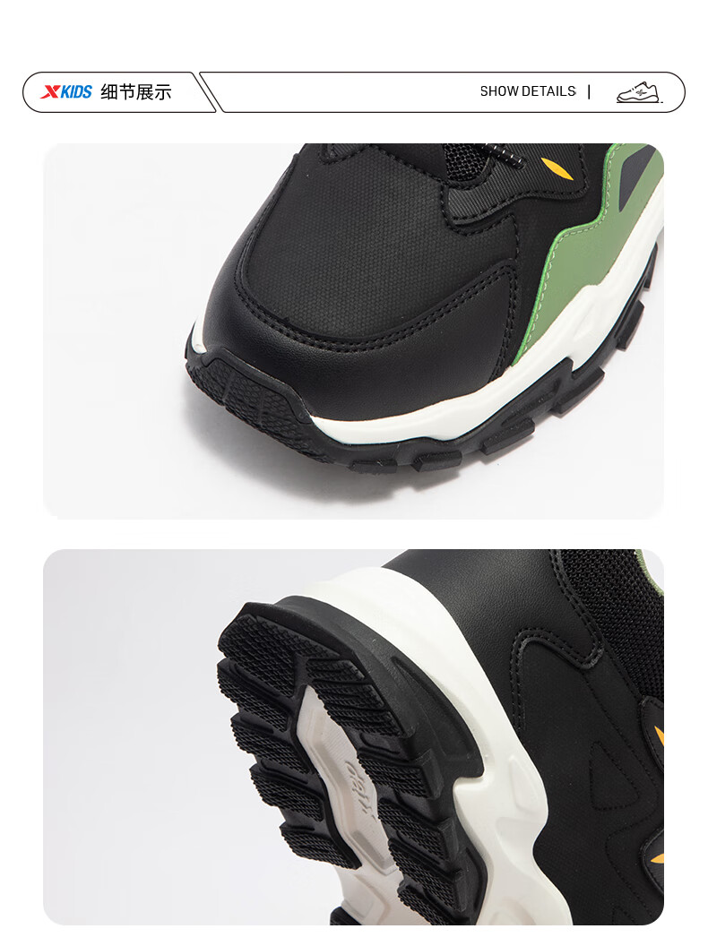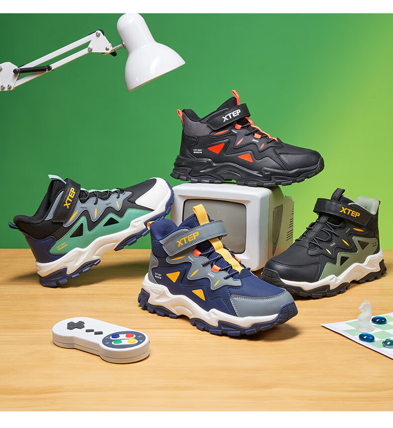 XTEP children's leather leather windproof and warm thick-soled casual shoes with elevated straps black/XTEP white/challenge red size 37