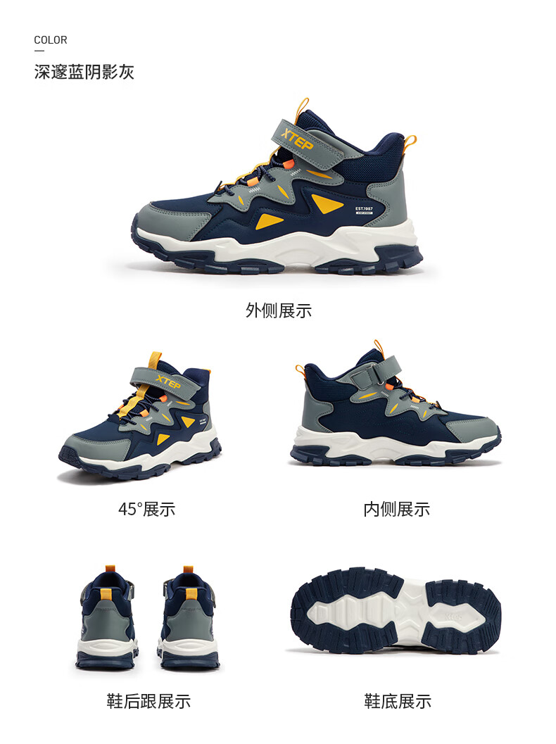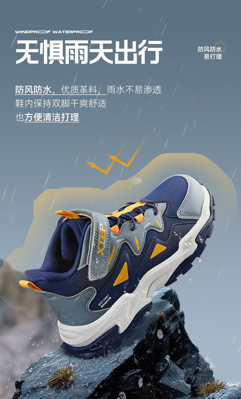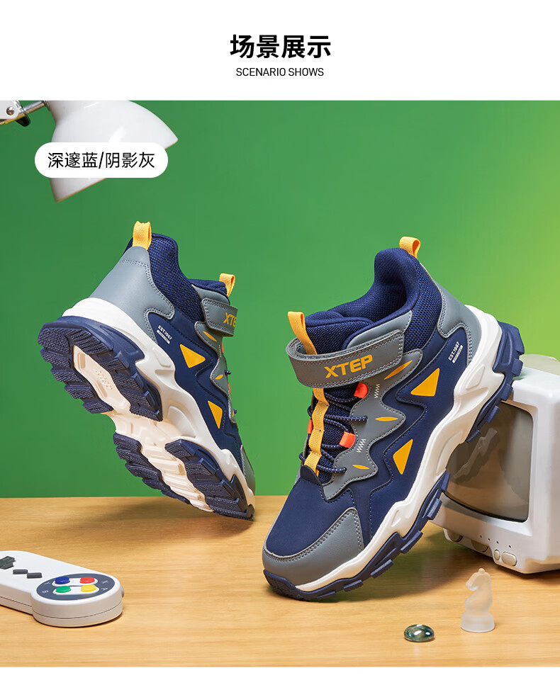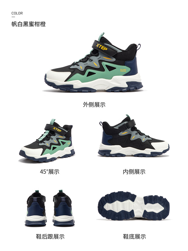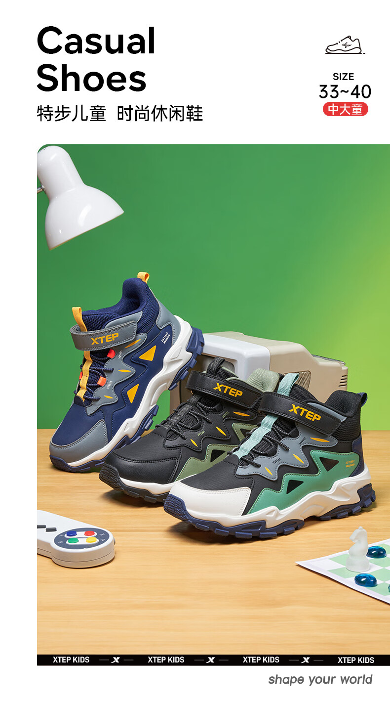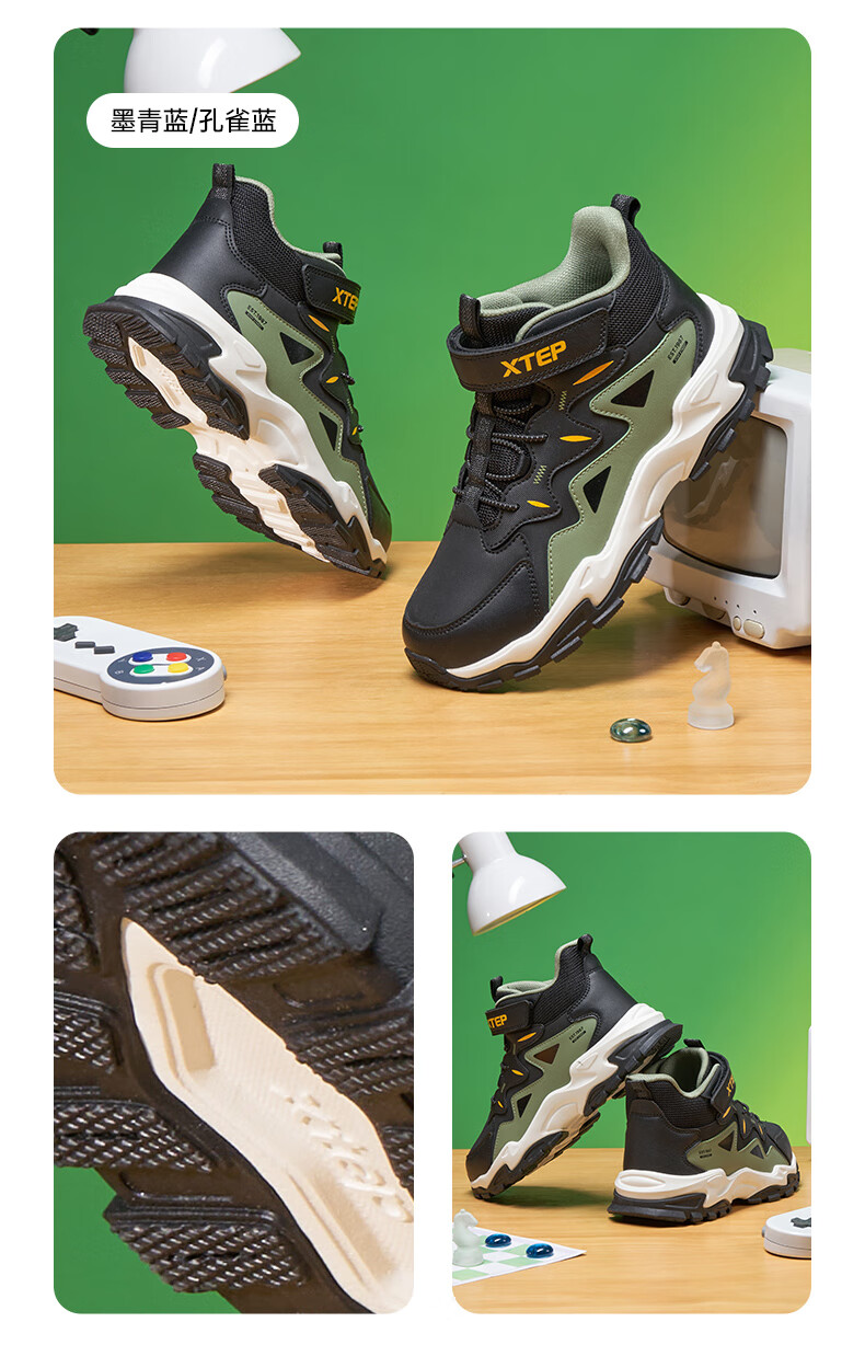 XTEP children's leather leather windproof and warm thick-soled casual shoes with elevated straps black/XTEP white/challenge red size 37