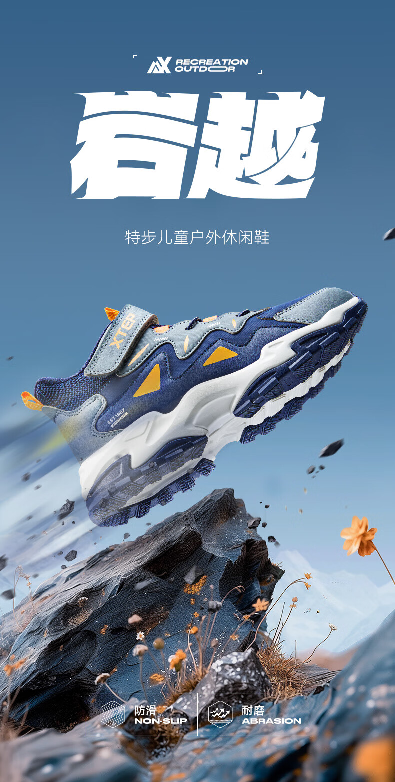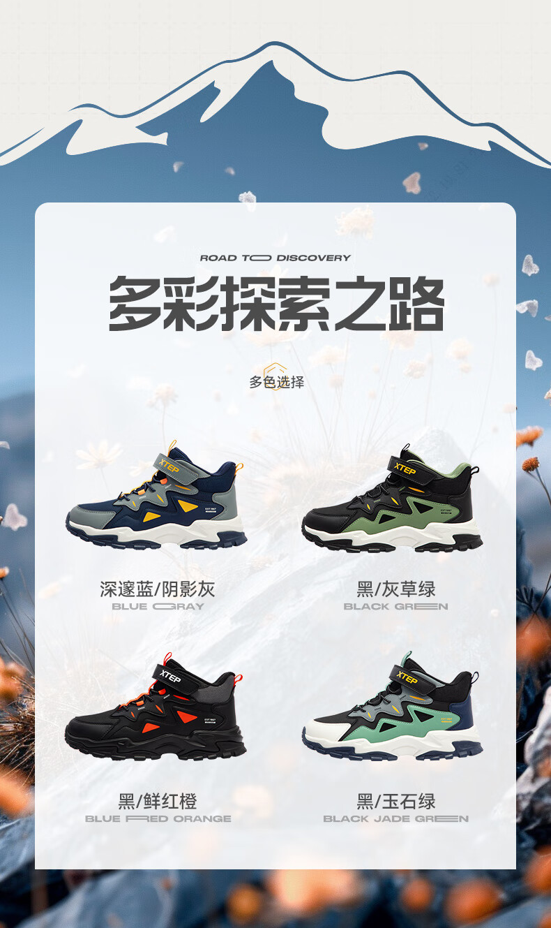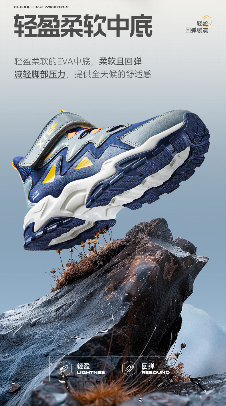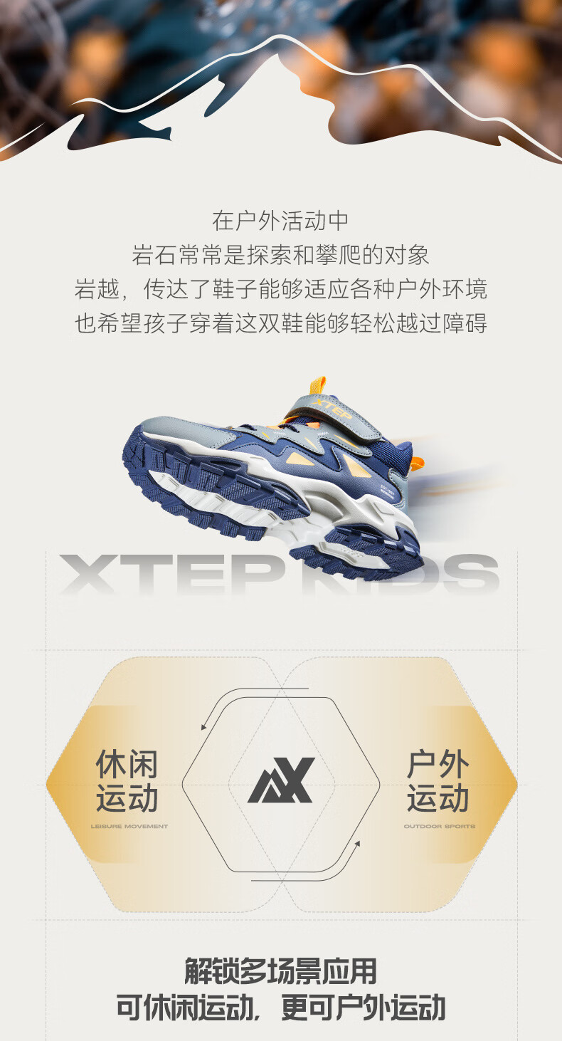 XTEP children's leather leather windproof and warm thick-soled casual shoes with elevated straps black/XTEP white/challenge red size 37