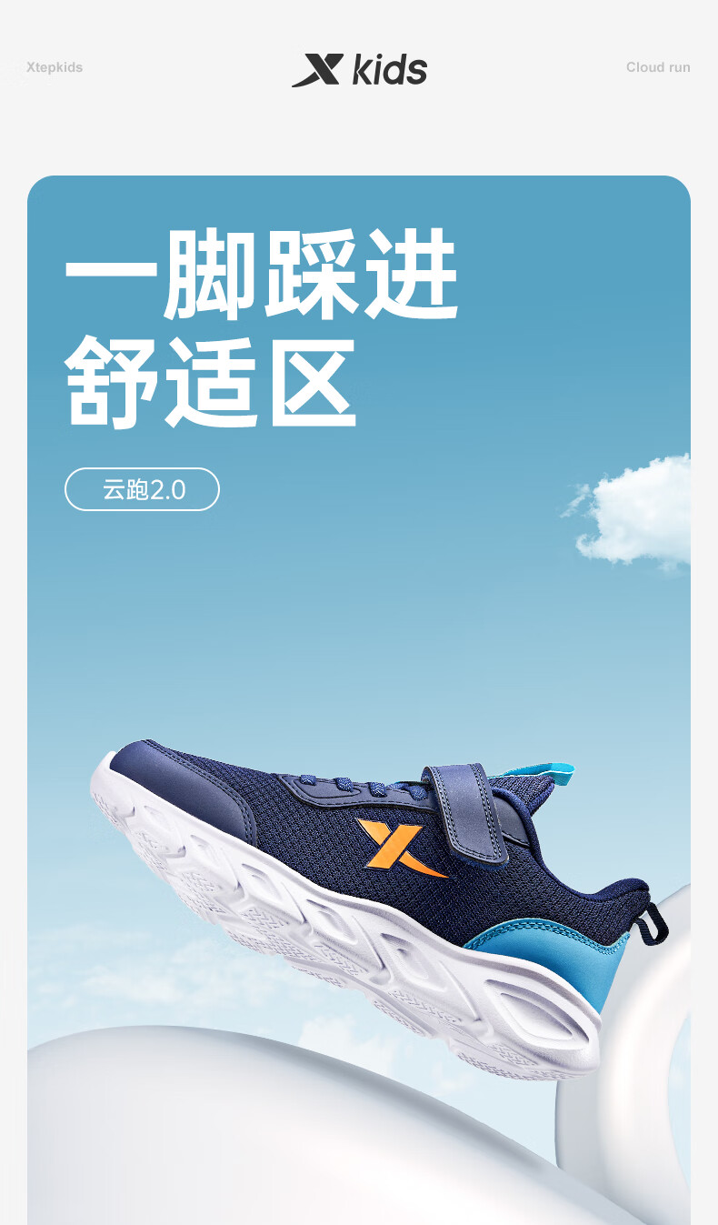 XTEP Zapatillas deportivas campus cómodas para niños de malla básica con velcro azul oscuro/azul bahía talla 37