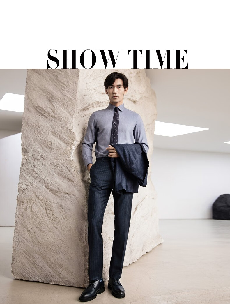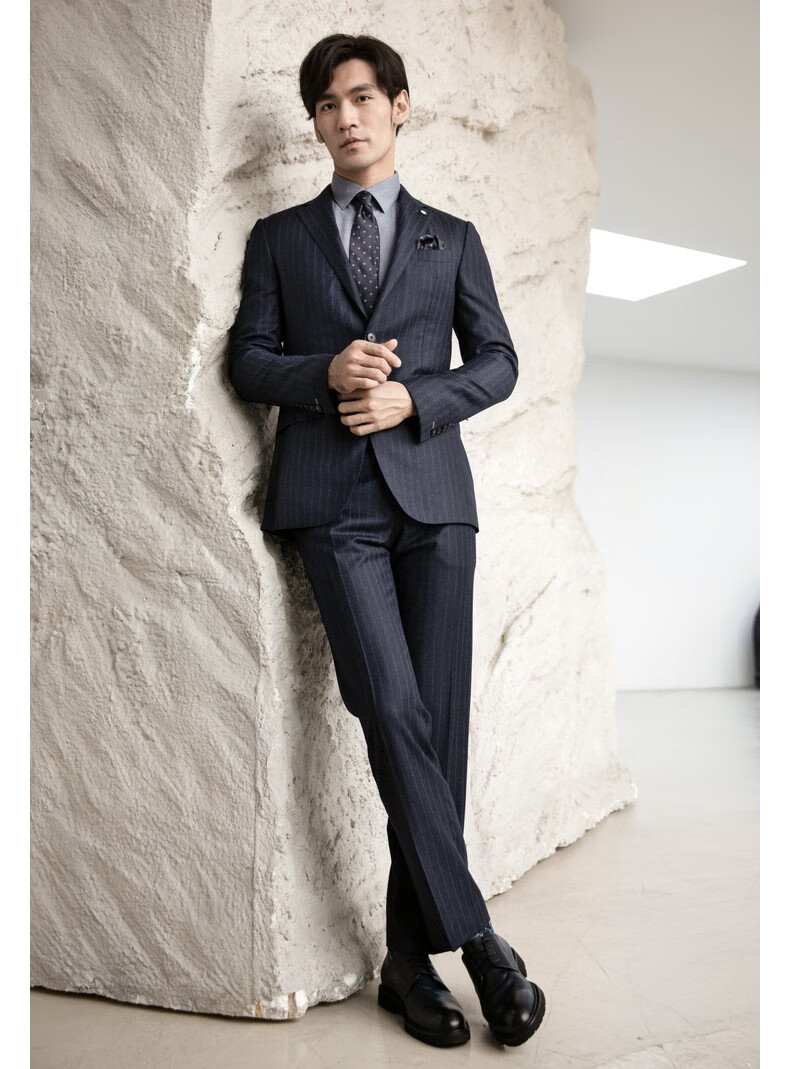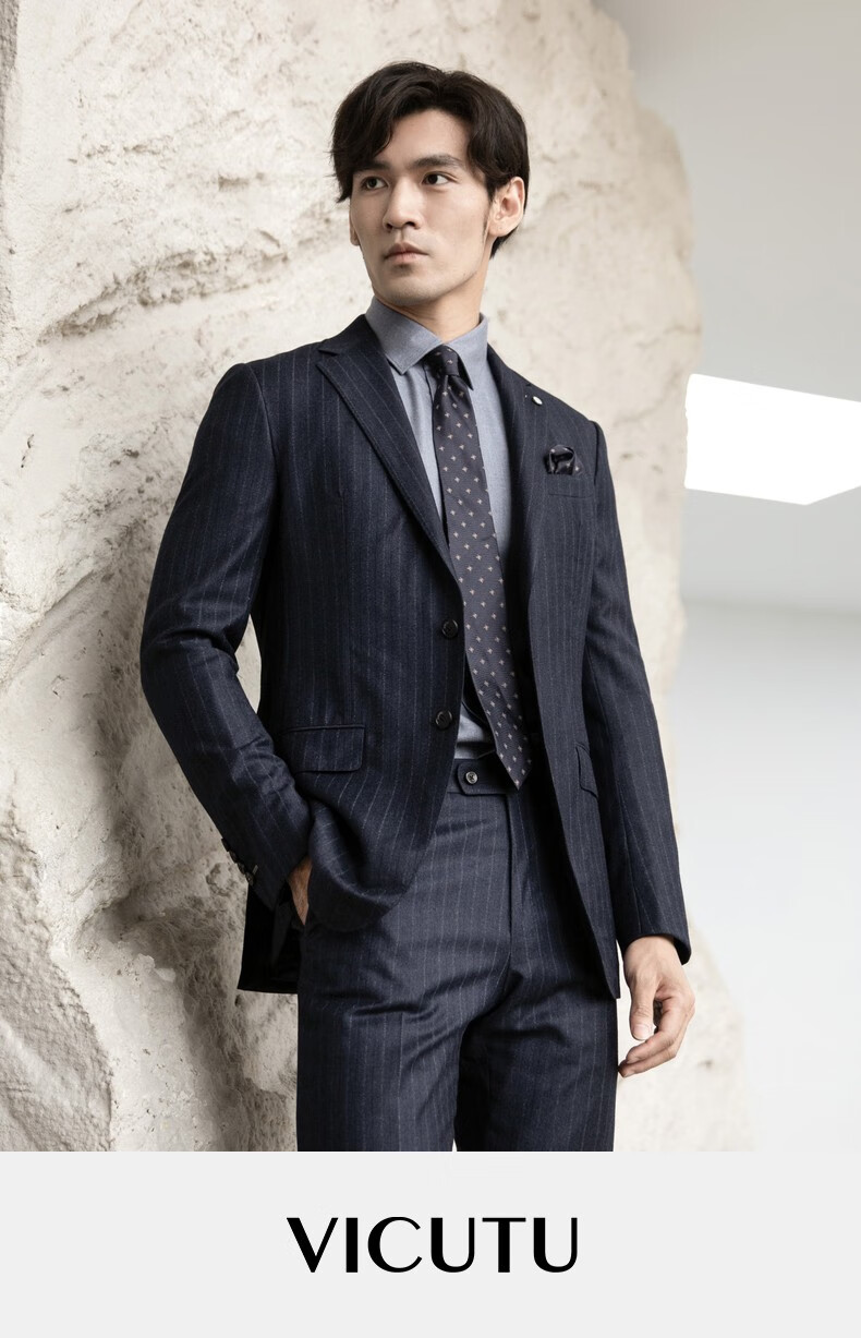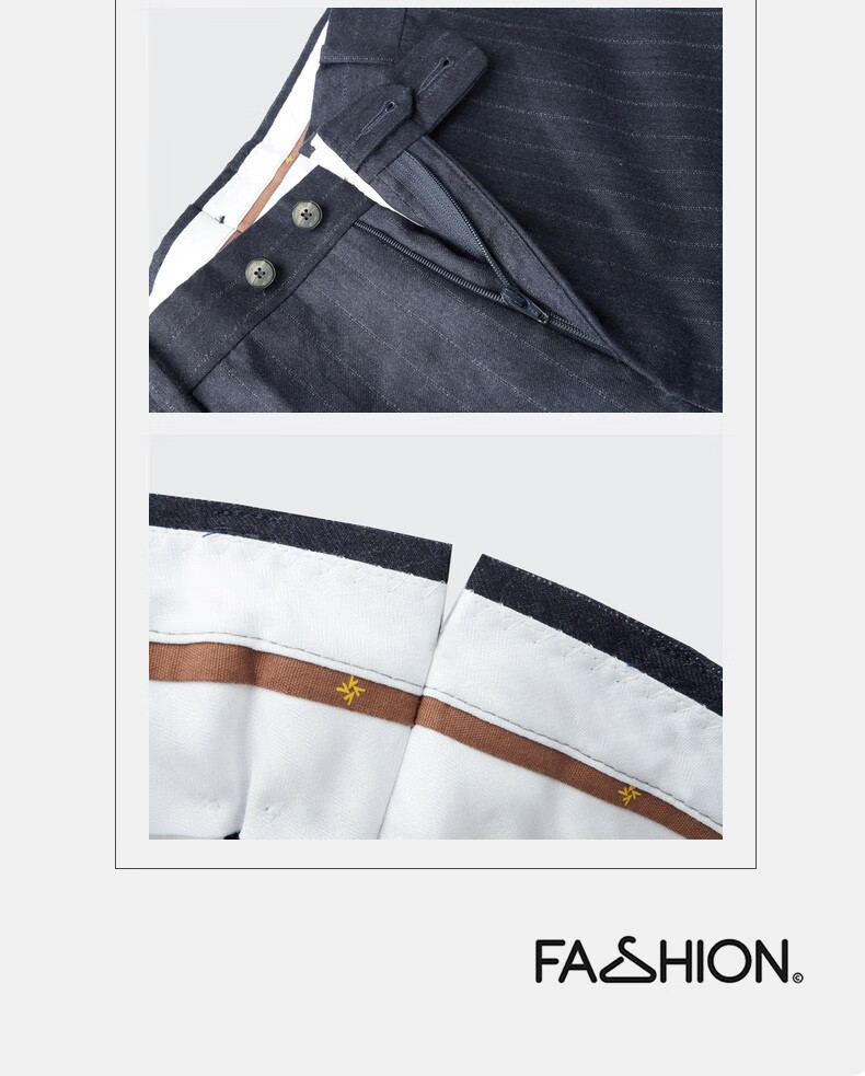 VICUTU Men's Wool Pants Skin Friendly Autumn Business Commuting Versatile Dark Blue Striped Suit Pants 185/96B