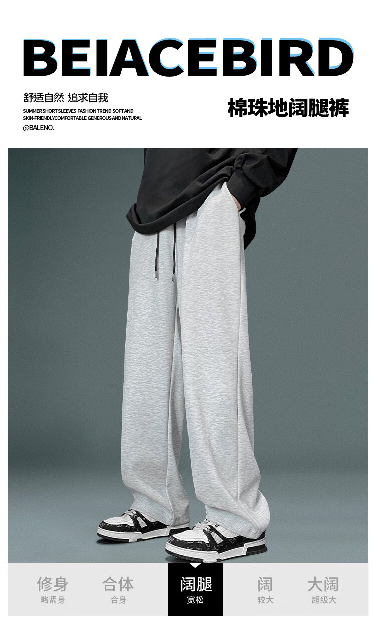 Baleno wide-leg pants for men, trendy, versatile, drapey, loose trousers for men, simple slimming sports casual straight pants for men, autumn