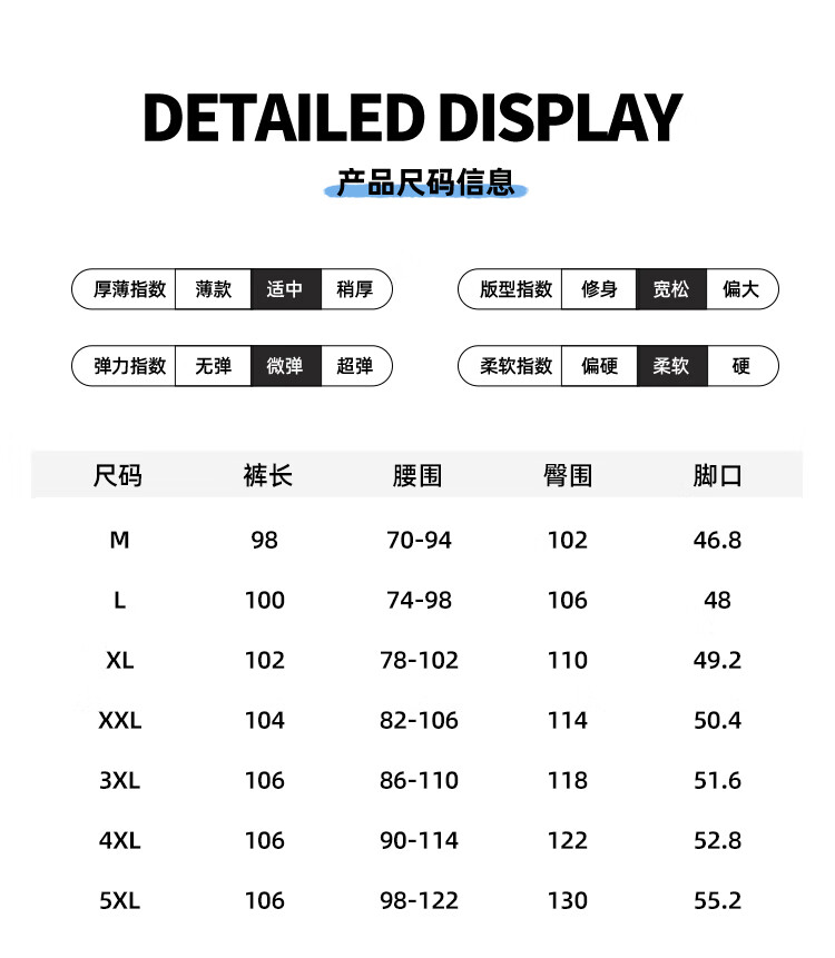 Outseam (cm) 99 cm 101.5 cm 104 cm 106.5 cm 109 cm