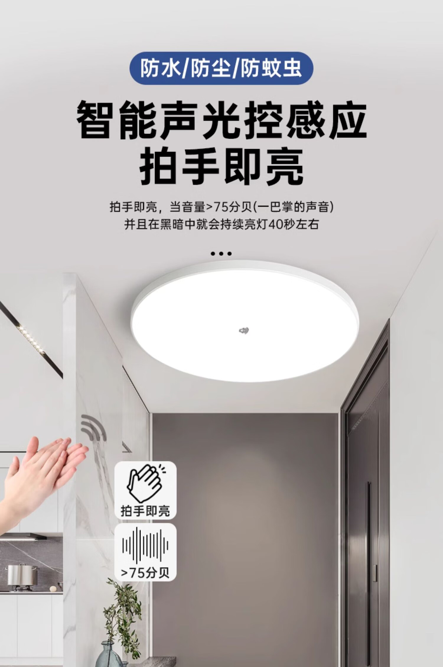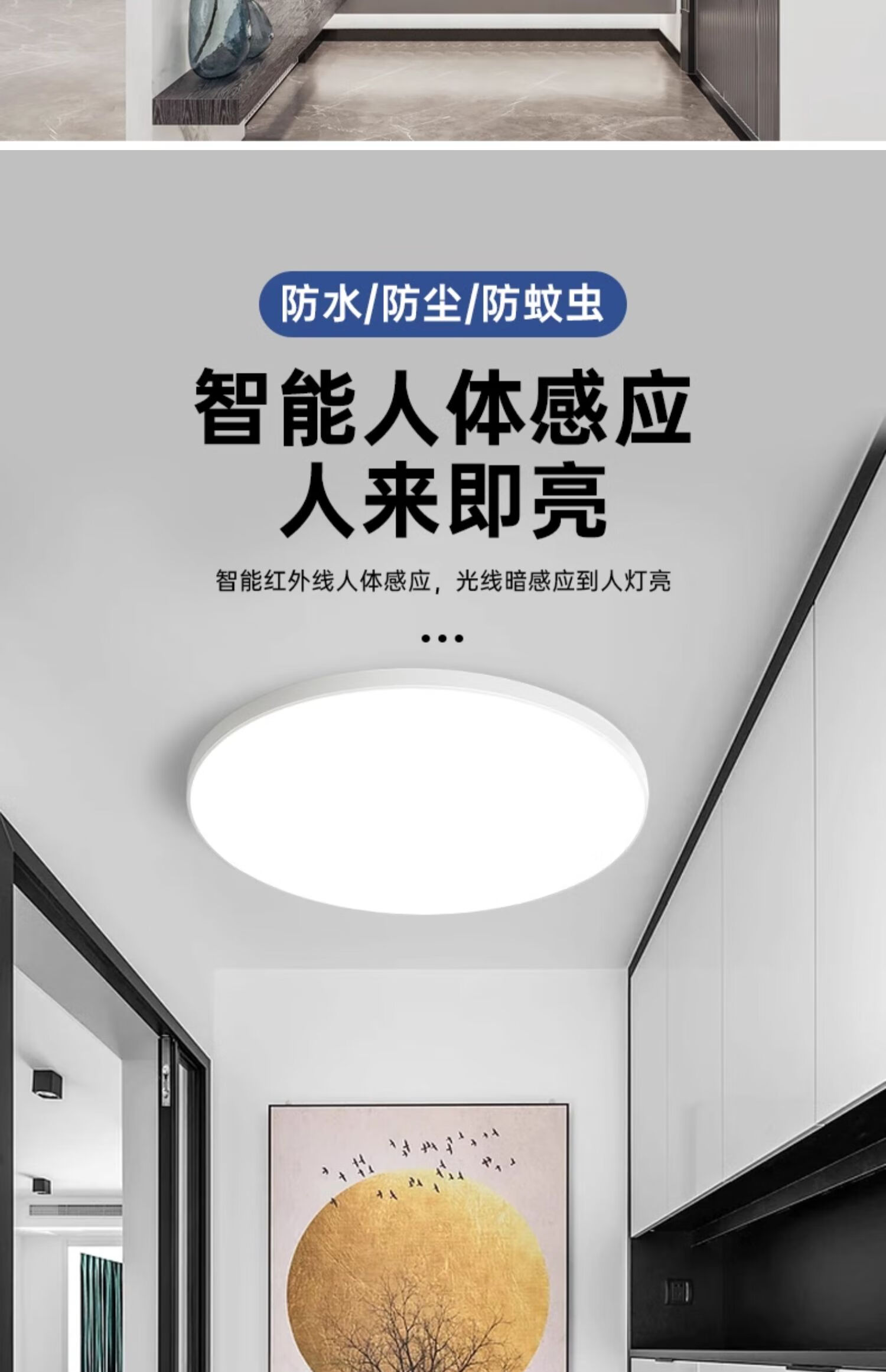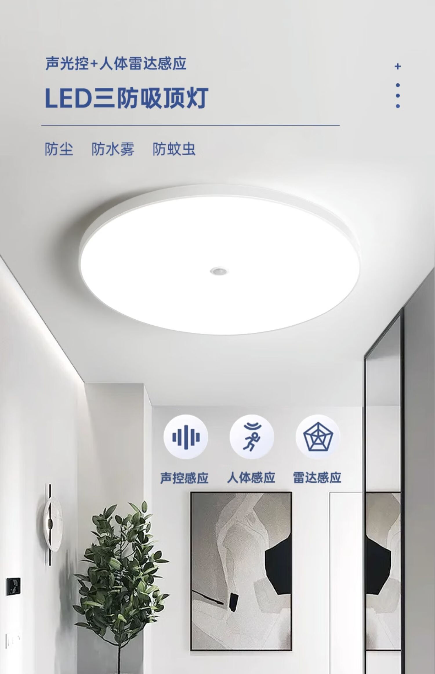 Whale and Light Ultra-thin Tri-Proof Lamp Sensor Light Explosion-Proof Lamp Anti-mosquito LED Lighting Corridor Light Human Body Radar Sensor Light Voice Control Lamp Tri-Proof Lamp 36CM Human Body Sensing 24W