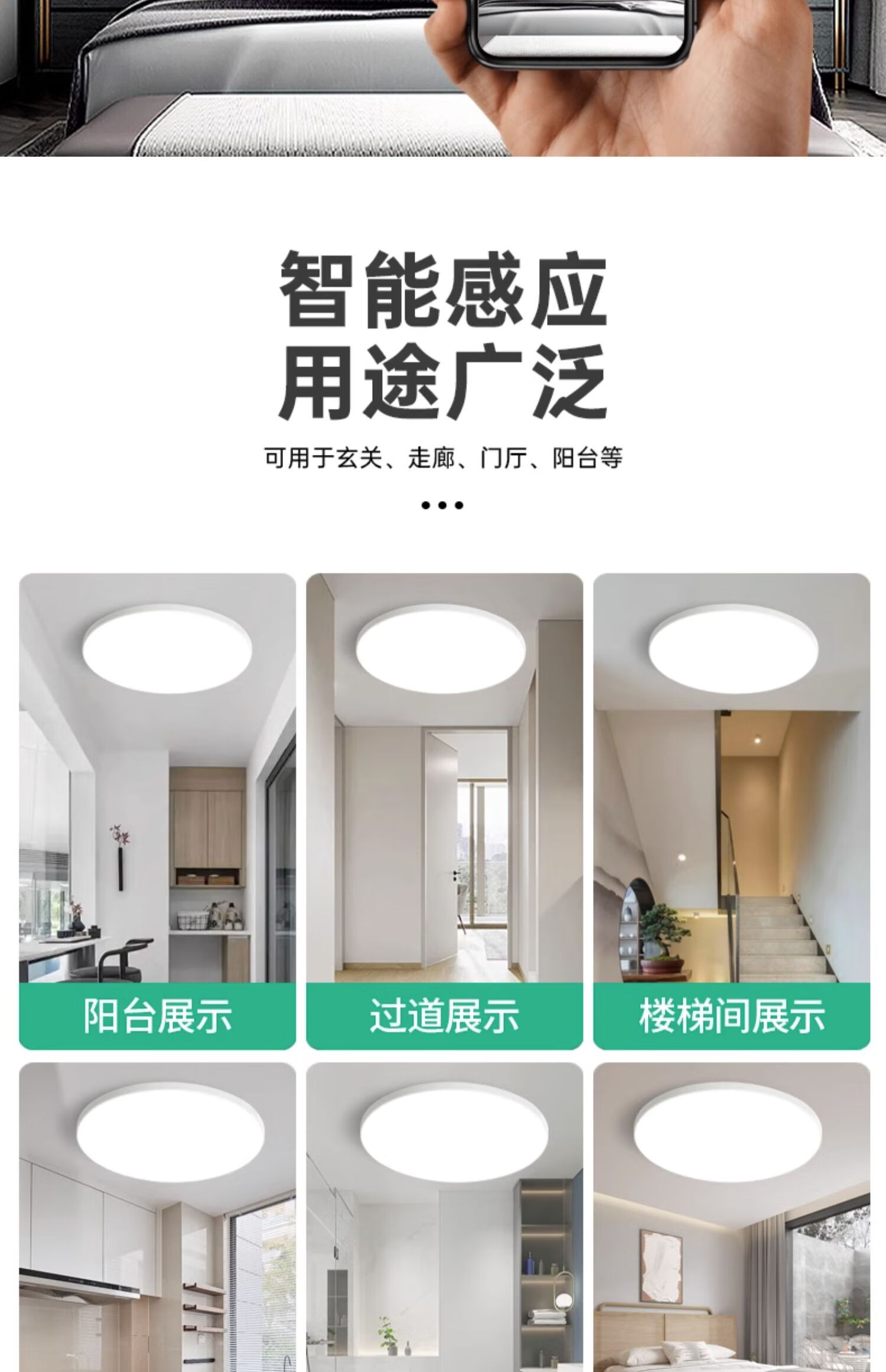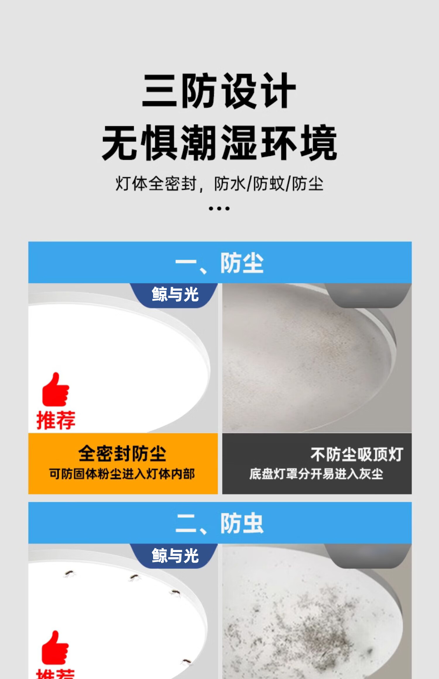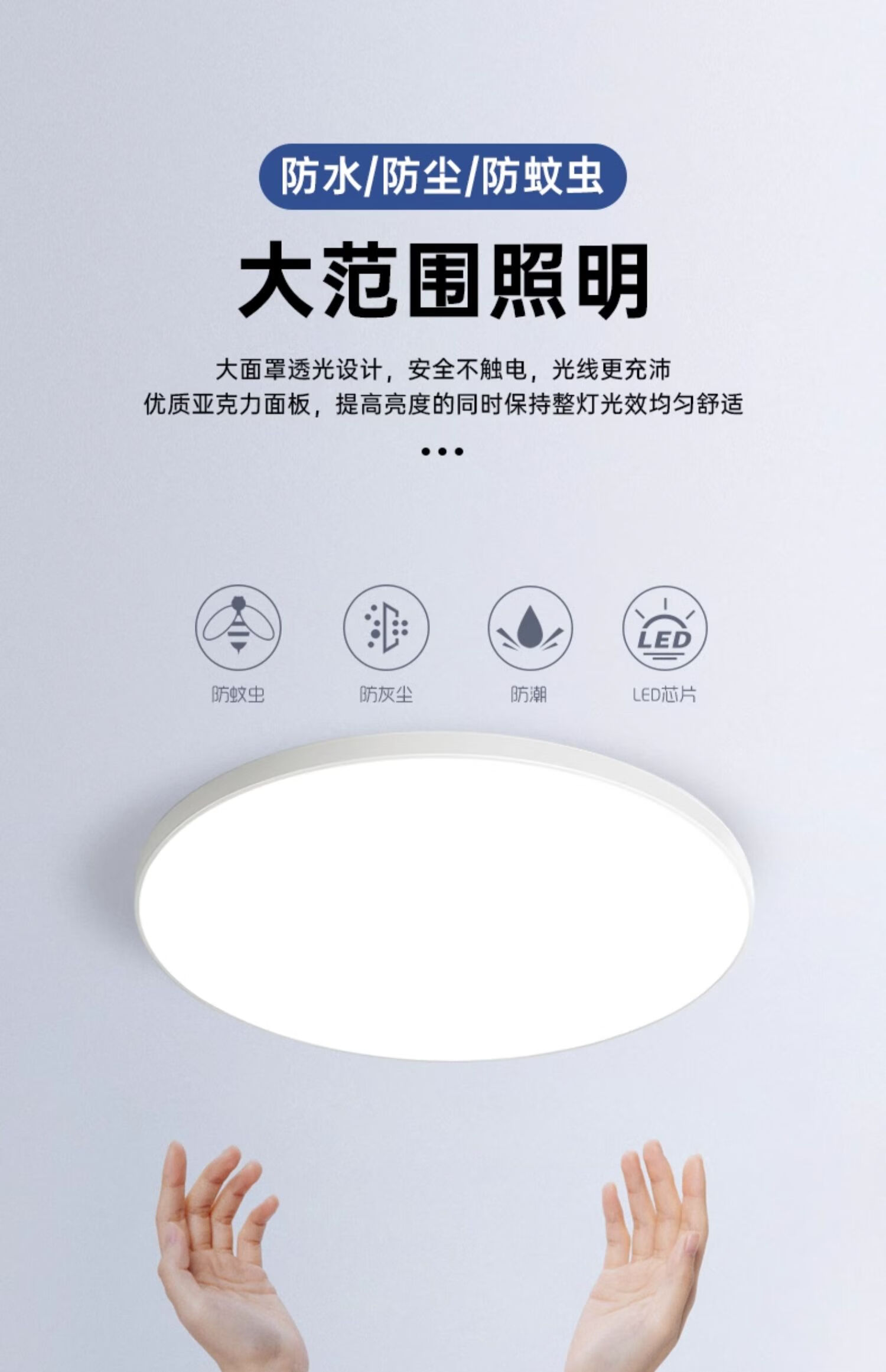 Whale and Light Ultra-thin Tri-Proof Lamp Sensor Light Explosion-Proof Lamp Anti-mosquito LED Lighting Corridor Light Human Body Radar Sensor Light Voice Control Lamp Tri-Proof Lamp 36CM Human Body Sensing 24W