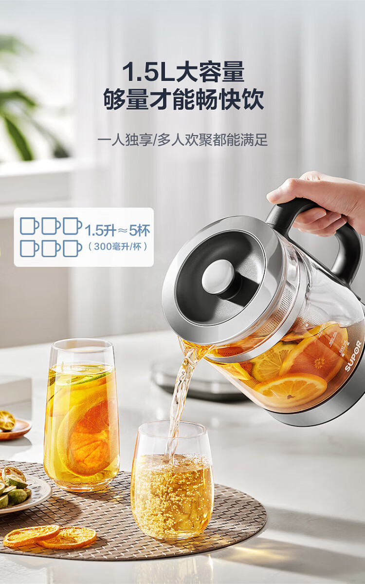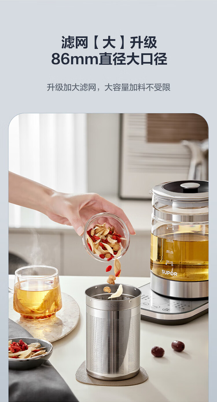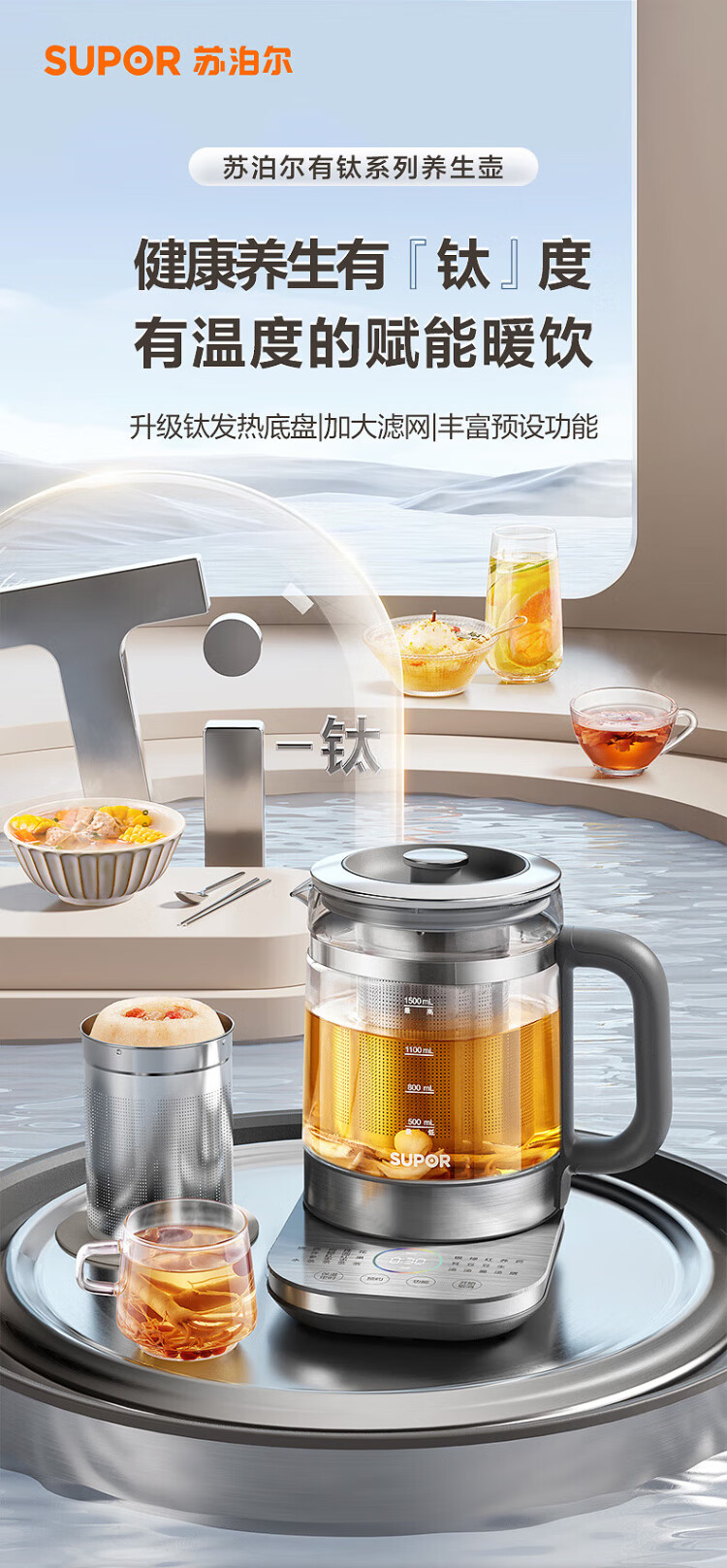 SUPOR pure titanium health kettle, glass panel kettle, 316L stainless steel constant temperature tea maker, enlarged filter, electric kettle with multi-stage heat preservation 1.5L SW-15YJ55