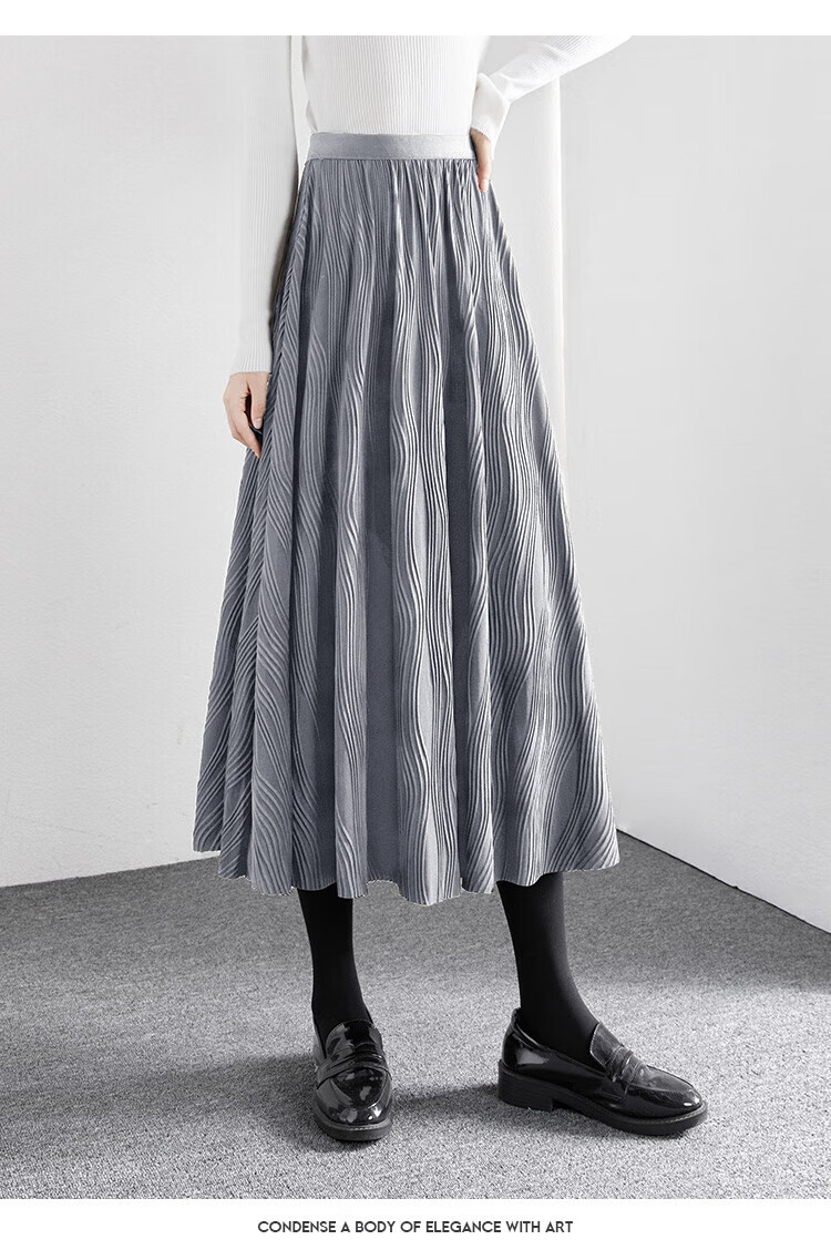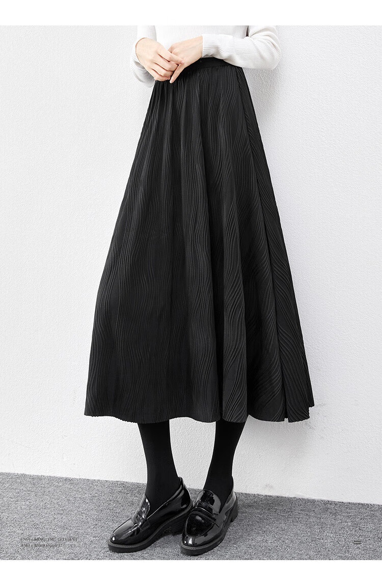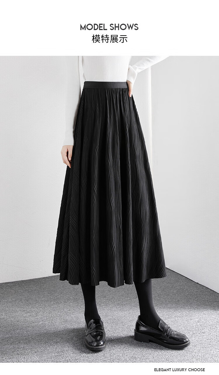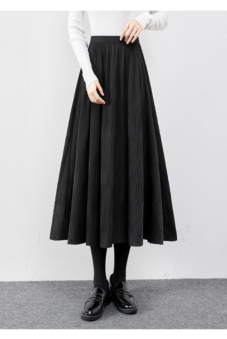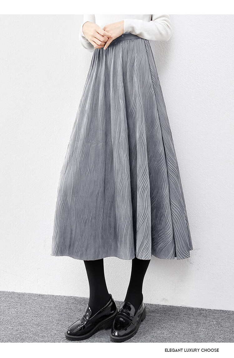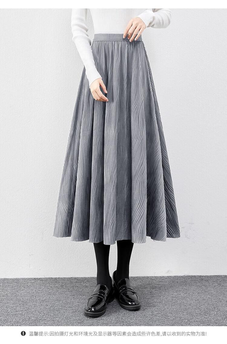 She pool high waist wide skirt women's 2025 autumn new style elastic waist slimming mid-length A-line retro skirt