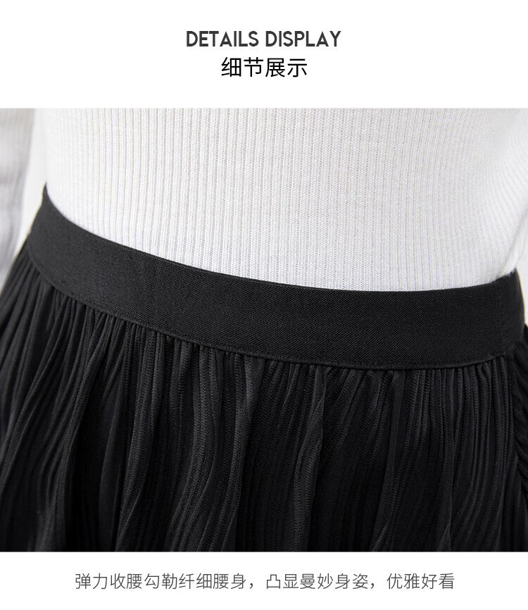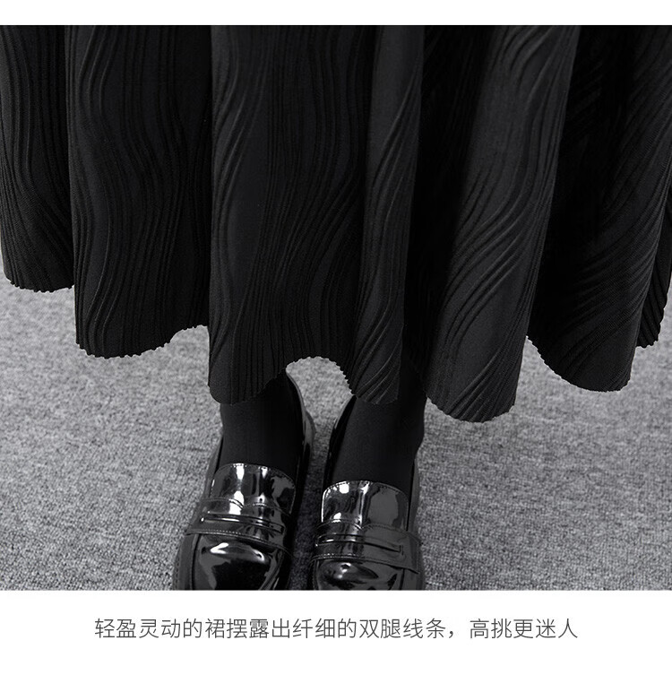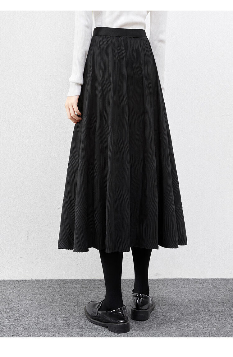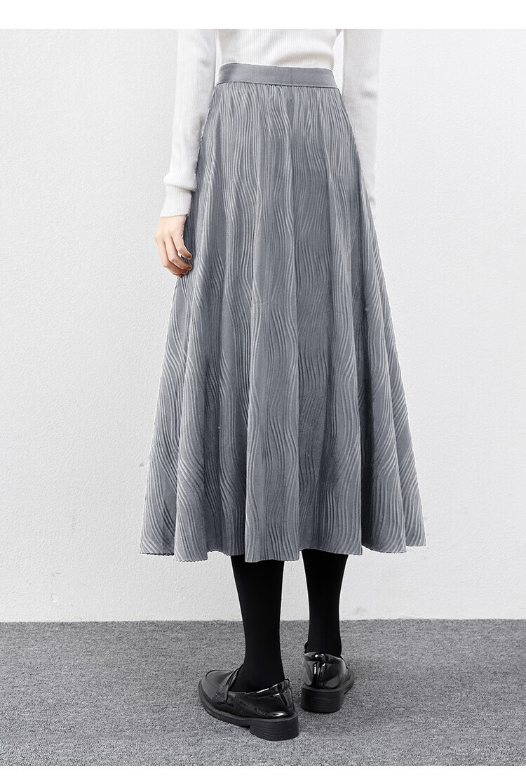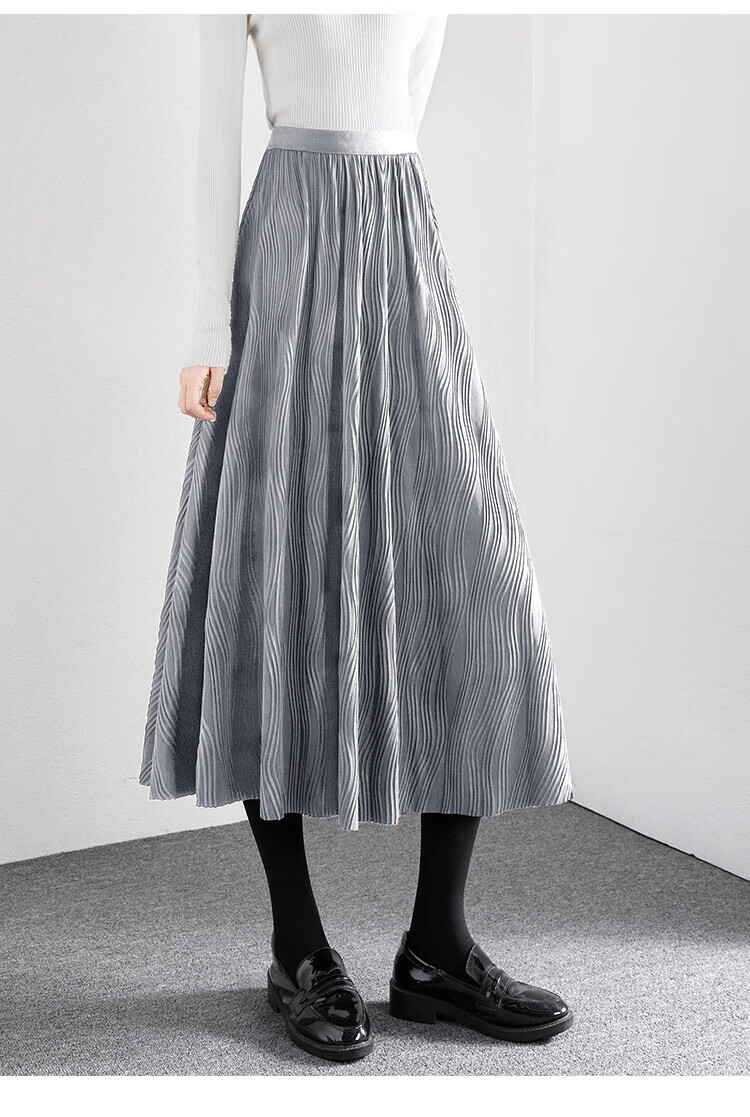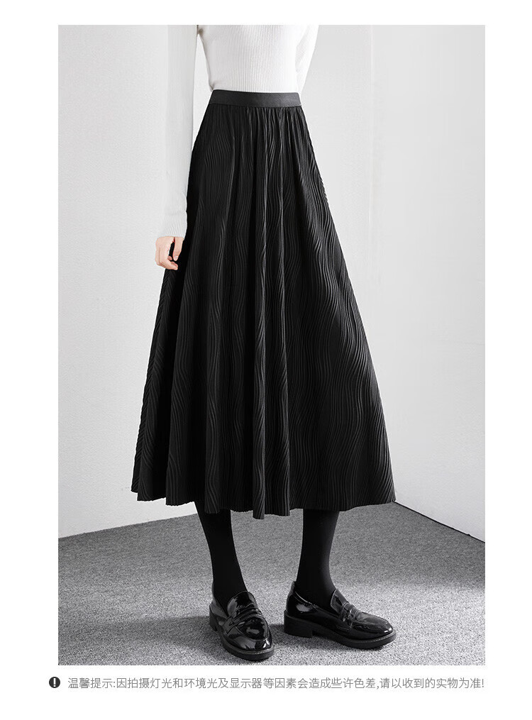 She pool high waist wide skirt women's 2025 autumn new style elastic waist slimming mid-length A-line retro skirt