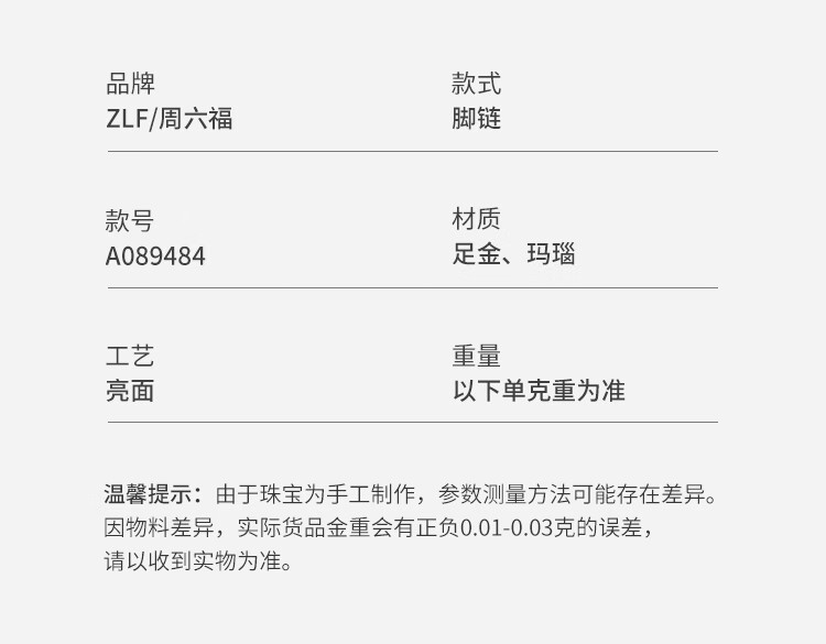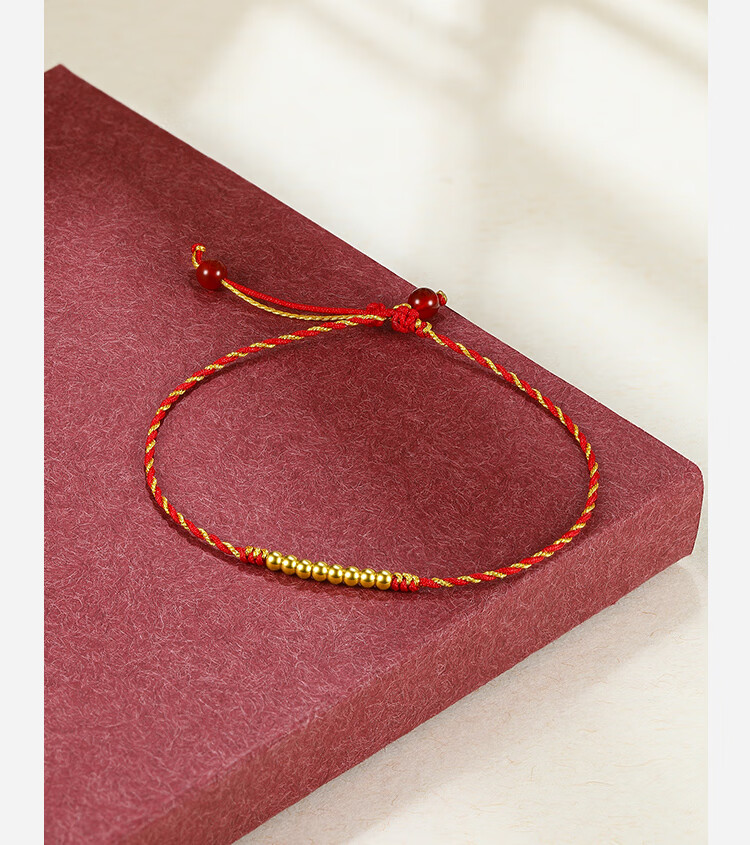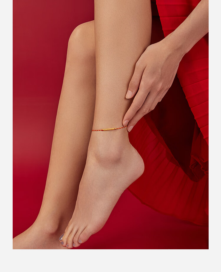 Saturday Blessing Pure Gold 999 Agate Gold Anklet for Women Simple Gold Beads Price A089484 Approximately 0.46g 21+4cm Gift